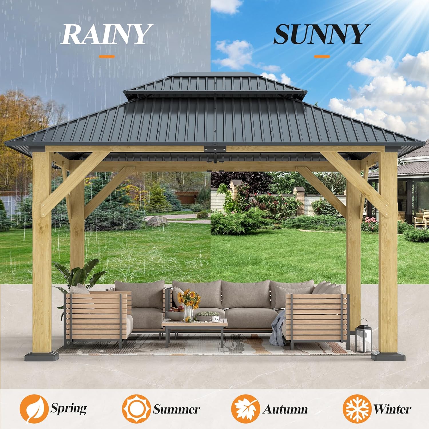 10’x 12’ Outdoor Wood Gazebo – Patio Hardtop Gazebo Permanent Wooden Pavilion with Galvanized Steel Double Roof, Cedar Wooden Gazebos for Garden, Lawn, Poolside, Backyard Deck B0DYD8HWWK