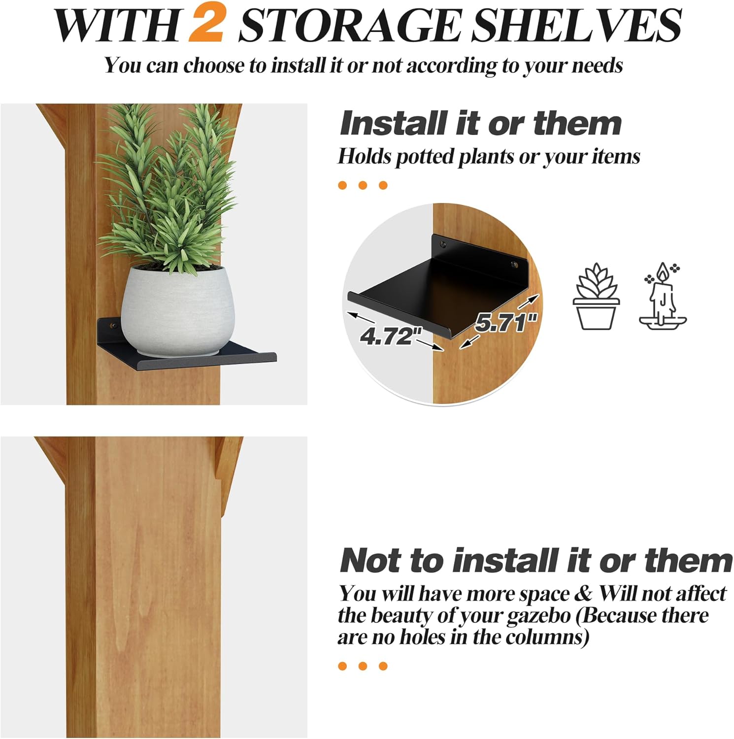 - ⛱️RELIABLE CUSTOMER SERVICE: Your satisfaction is our top priority. We are committed to providing exceptional customer service and support to ensure that you are happy with outdoor Cedar wood gazebos. Please trust our confidence in wooden gazebos and our sincerity to our customers