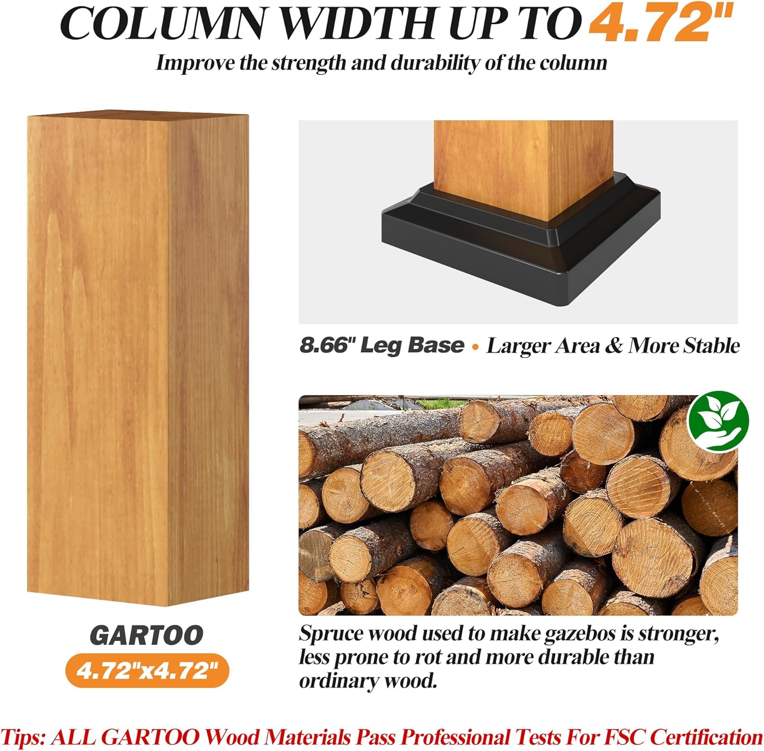 - ⛱️MULTIFUNCTIONAL USE: Whether you would like to create a cosy outdoor living space or host a party with family and friends, GARTOO wooden gazebo is the perfect addition to your patio, backyard, balcony or garden. Outdoor wood frame gazebo offers plenty of space for seating, dining or relaxing, allowing you to make the most of your outdoor area