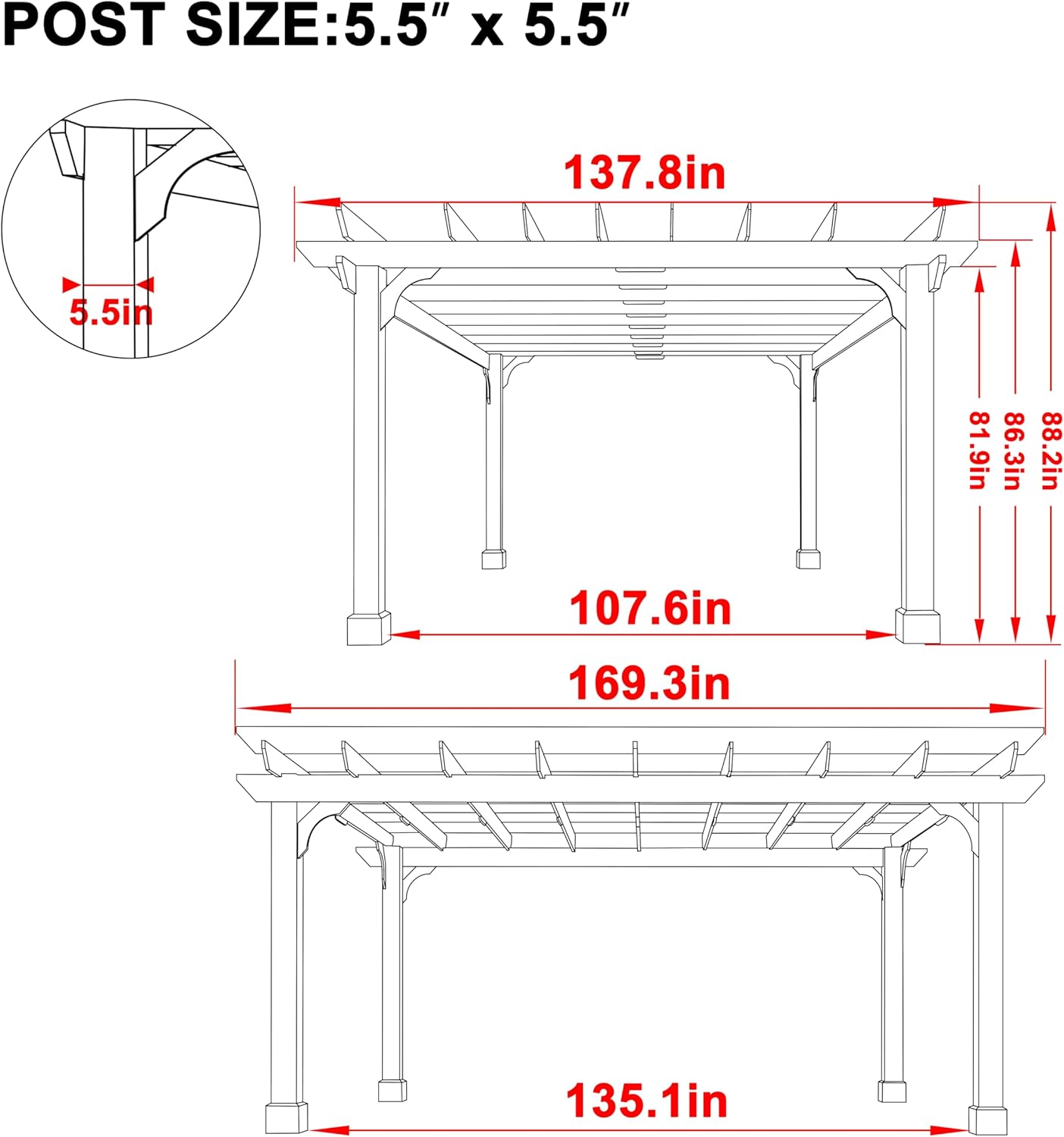 • Flat Roof Design: Our grape pergola features a unique flat roof design, which adds beauty and elegance addtion to your garden while providing ample sunlight. You can add an extra cover to the top of the pergola for more shade or rain protection. In addition, you can hang light weighted hangings and decorations on the open slatted design if you like