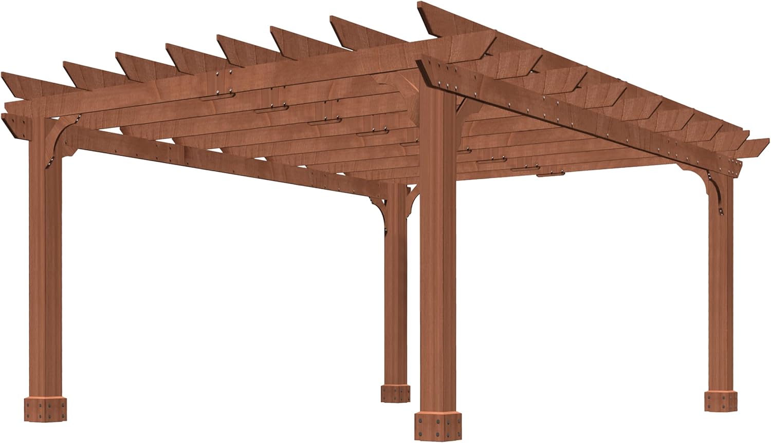 12×14 FT Wooden Pergola with Flat Roof, Cedar Wood Gazebo with Stakes Included, Outdoor Garden Shelter for Patio, Deck, Backyard, Lawn B0F2S2KL46
