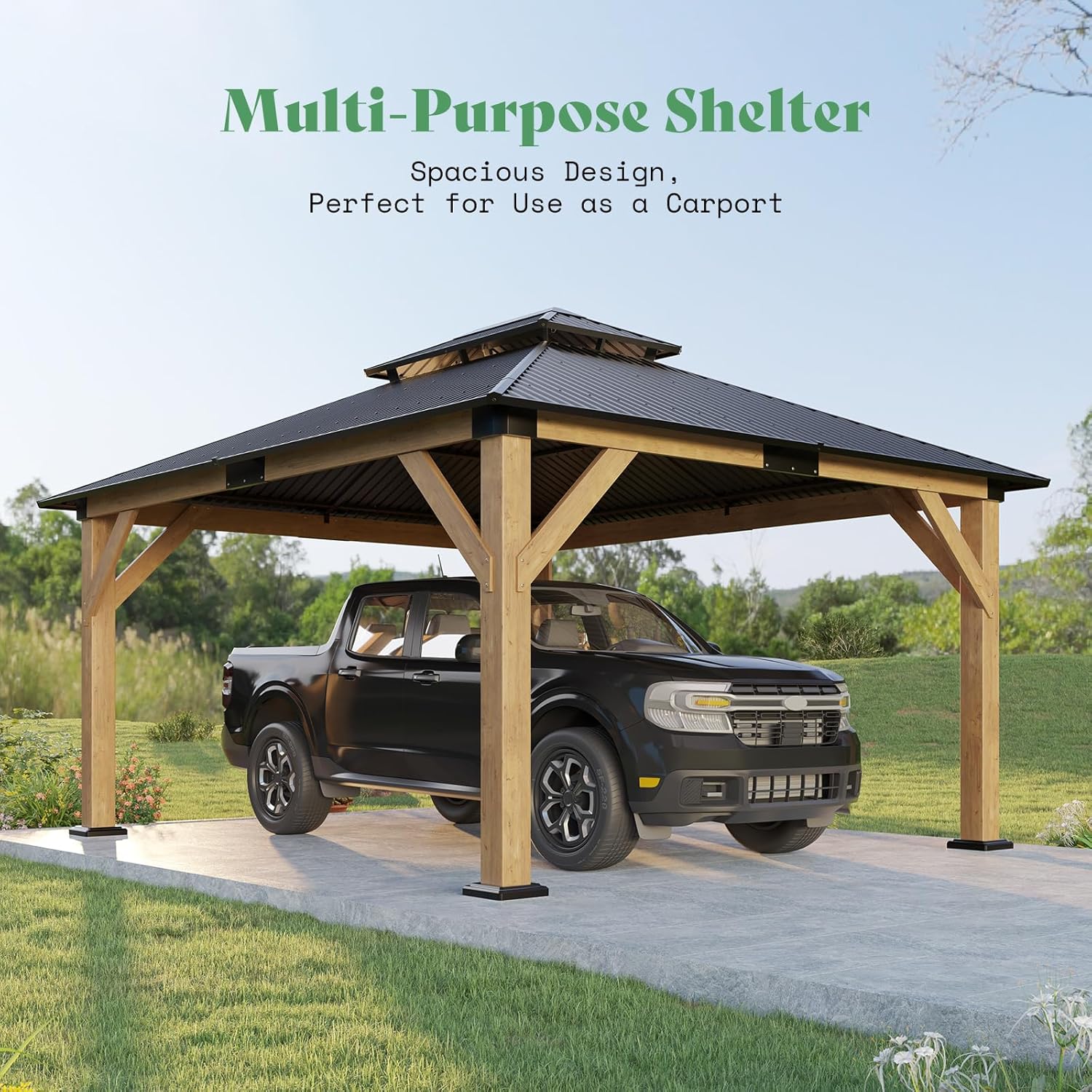 10’x 12’ Outdoor Wood Gazebo – Patio Hardtop Gazebo Permanent Wooden Pavilion with Galvanized Steel Double Roof, Cedar Wooden Gazebos for Garden, Lawn, Poolside, Backyard Deck B0DYD8HWWK