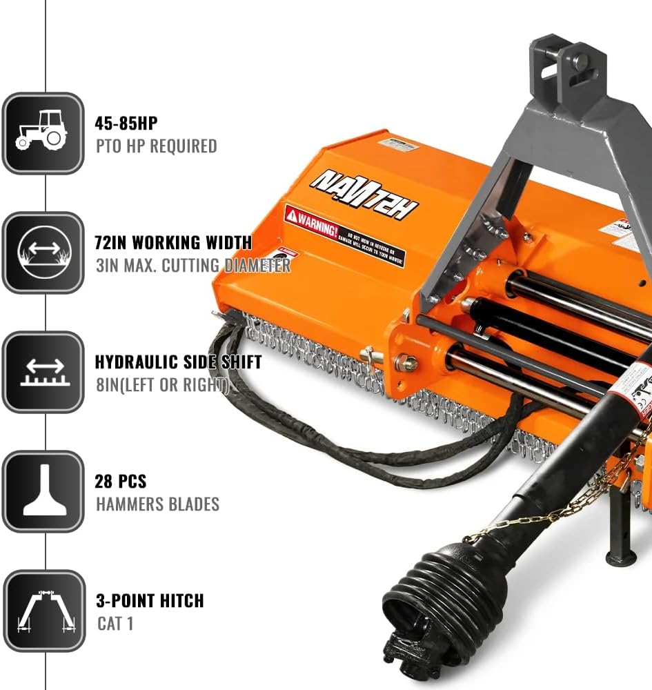 72” PTO Flail Mower with Hydraulic Side Shift 3 Point 45-85hp, NAM72H B0DQ8QSCJ1