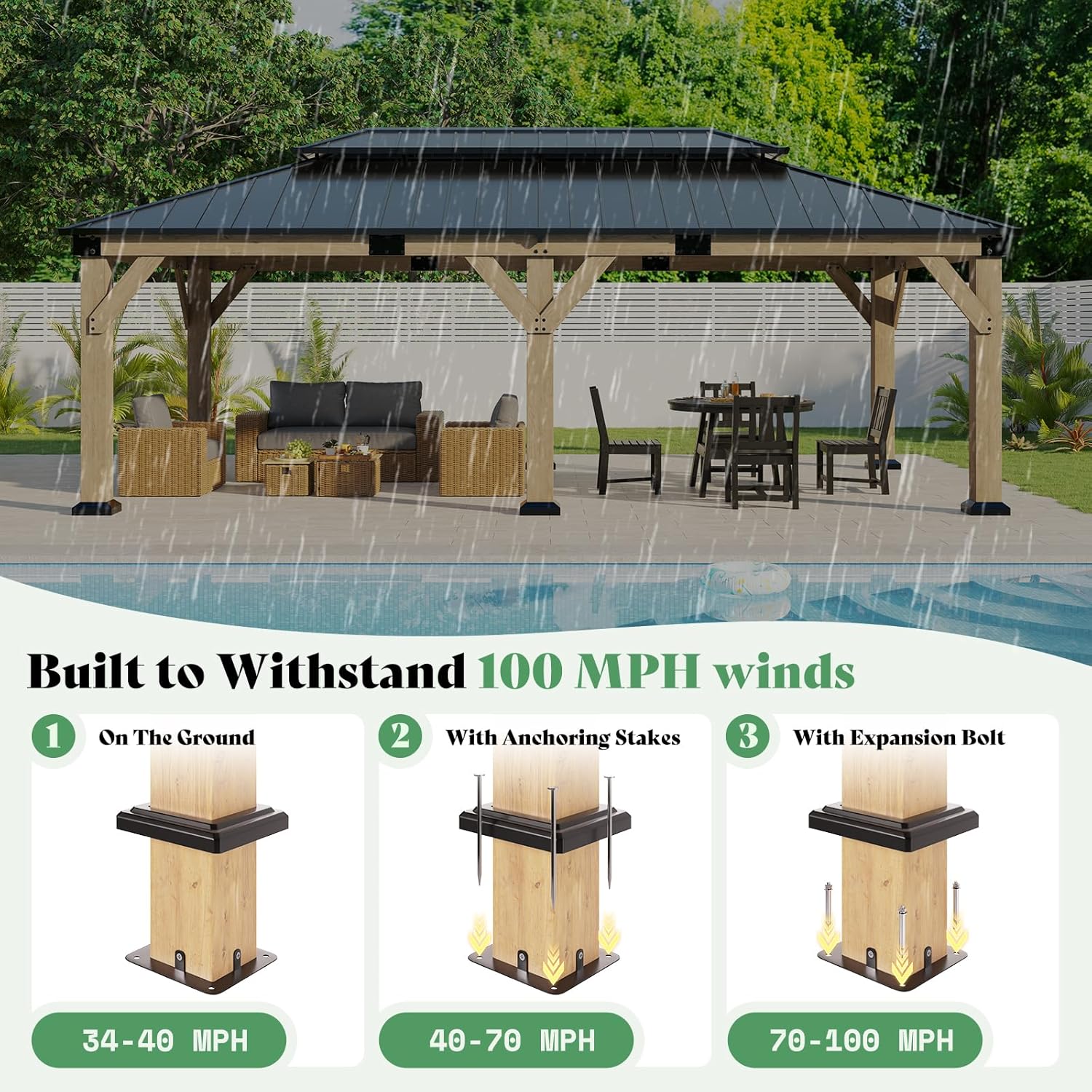10’x12′ Wooden Hardtop Gazebo,Wood Heavy Duty Solid Cedar Gazebos with Mosquito Netting and Waterproof Curtains,Outdoor Metal Canopy for Backyard Deck Patio B0DWK3ZFSQ