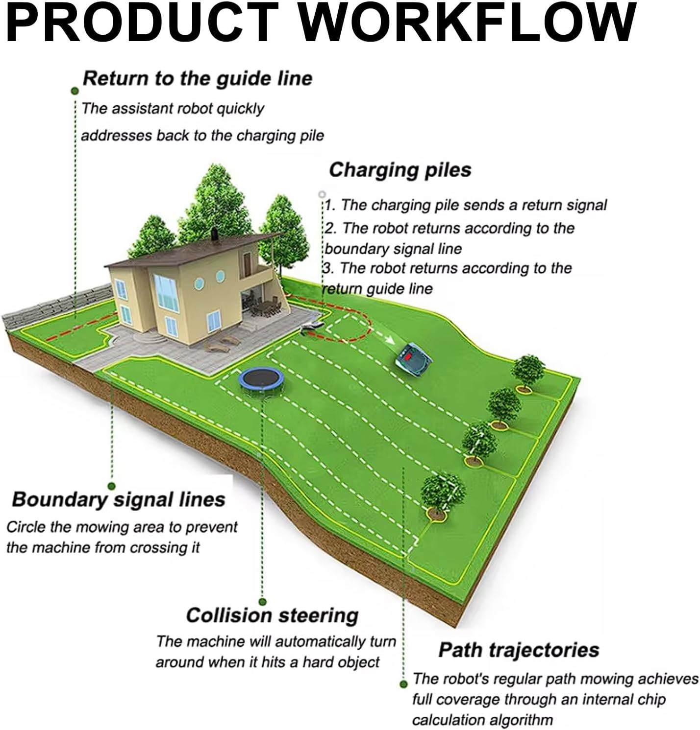 Built-In Sensor:Whenever the mower hits a hard object,it will automatically turn around. The built-in sensor can detect if the machine is off the ground for more than two seconds,and the blade will automatically stop rotating. Operating Efficiency:The mower work along parallel routes,with an operating efficiency of 100㎡/h;The machine can sense the terrain of the lawn,calculate […]