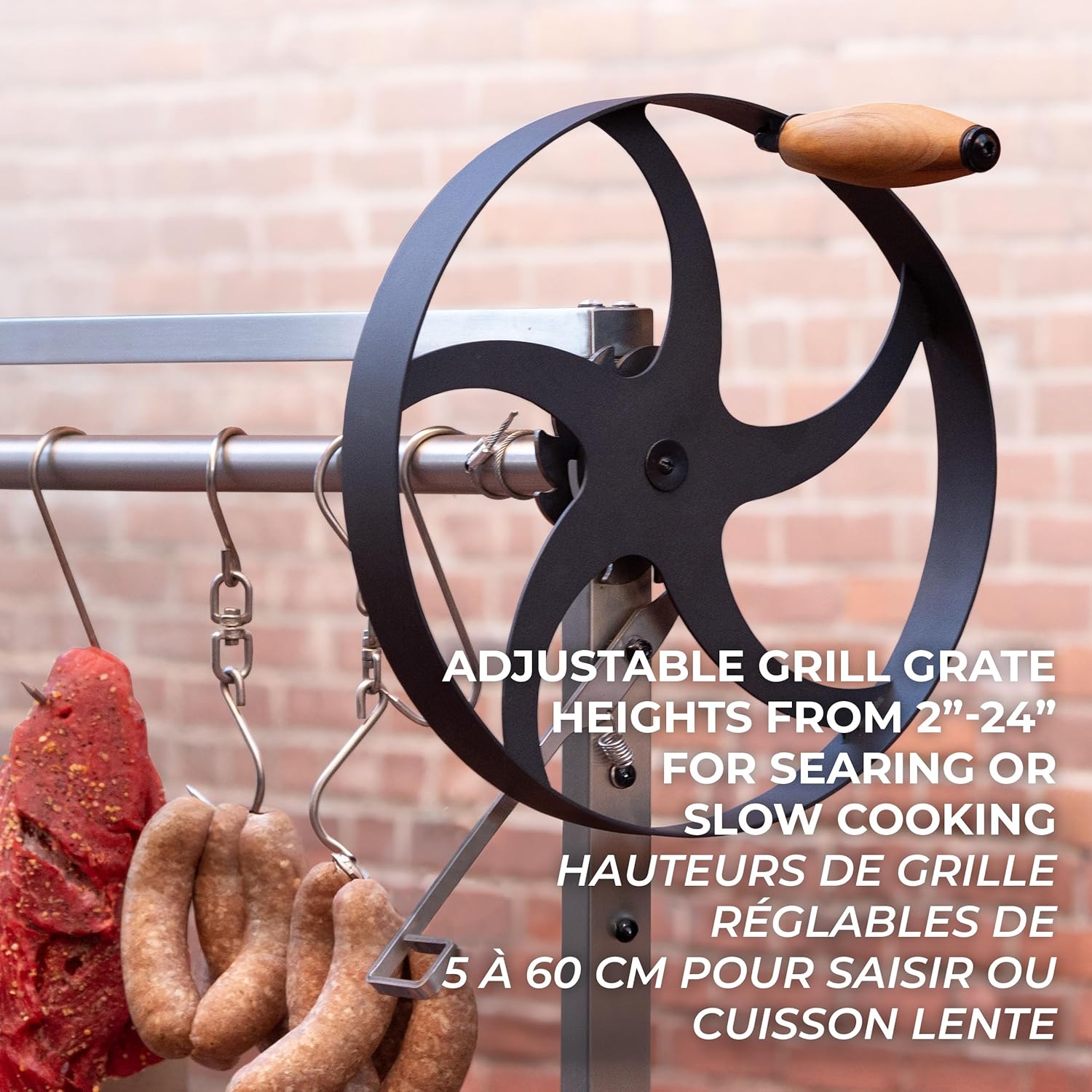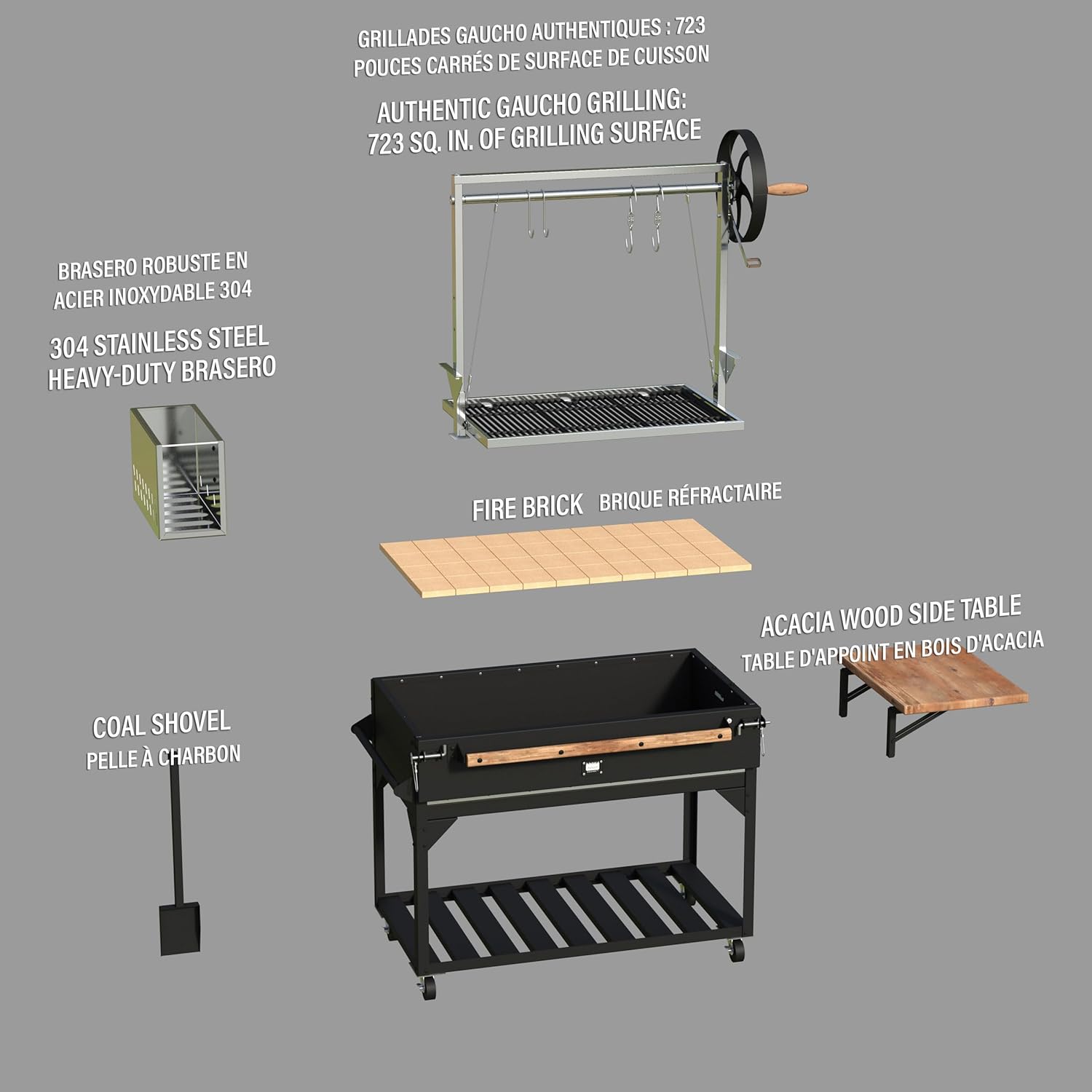 Backyard Discovery Argentine Santa Maria Wood Fire & Charcoal BBQ Grill with Brasero, Adjustable Grill Grates, Fire Bricks, Heavy-Duty Steel, S-Hooks, Acacia Wood Table for Outdoor Gaucho Grilling B0CWLX6XHB