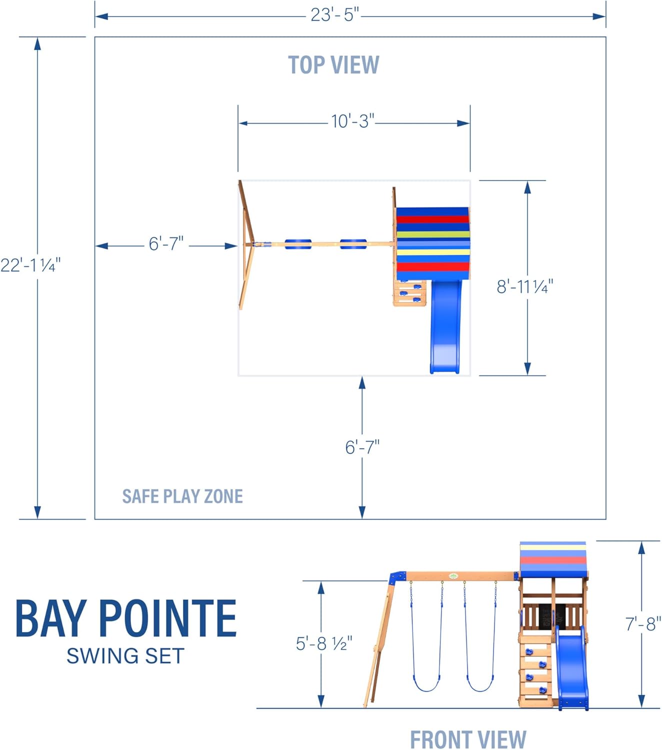 Backyard Discovery Bay Pointe Cedar Wood Swing Set with Wave Slide, Play Deck, Rock Wall Ladder, Belt Swings, Chalkboard, Canopy Roof, Outdoor Playset B09YGXYGW5