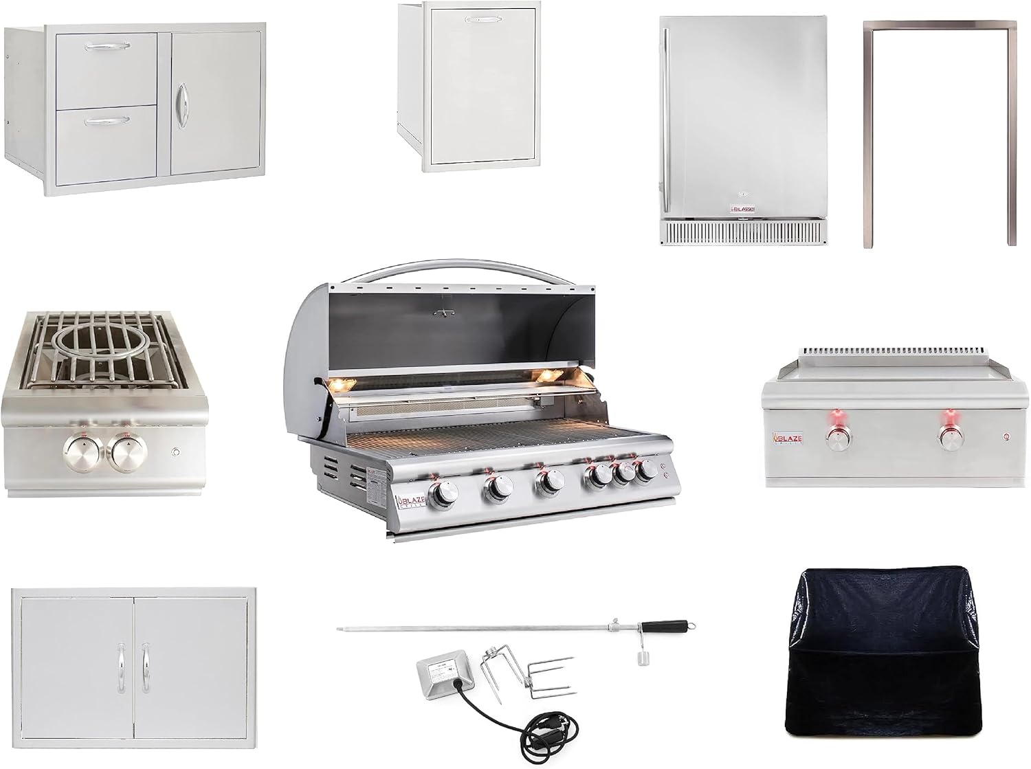 BLAZE BBQ Outdoor Grill Package 2 of 40” LTE Built-in Natural Gas Grill, LTE Gas Griddle, Gas Power Burner, 32” Door & Two Drawers Combo, Double Access Door, Refrigerator, and Accessories B0CX13VW95