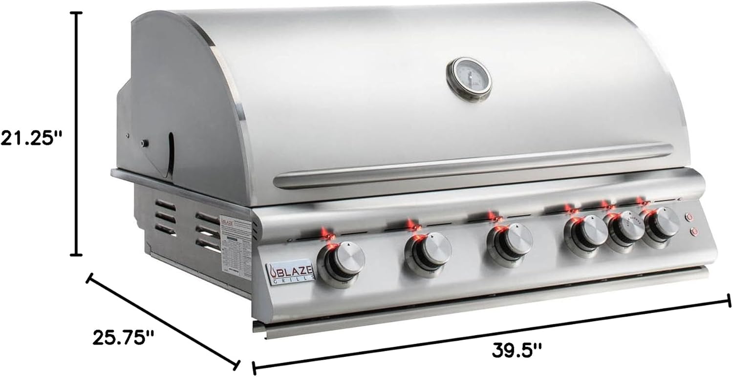 Blaze Outdoor Grill | 40-Inch Stainless Steel Propane BBQ Grill | 5 Burner Barbecue | Premium Outdoor Kitchen Grilling | Rear Infrared Burner & Grill Lights | BLZ-5LTE2-LP B07B8S9J46