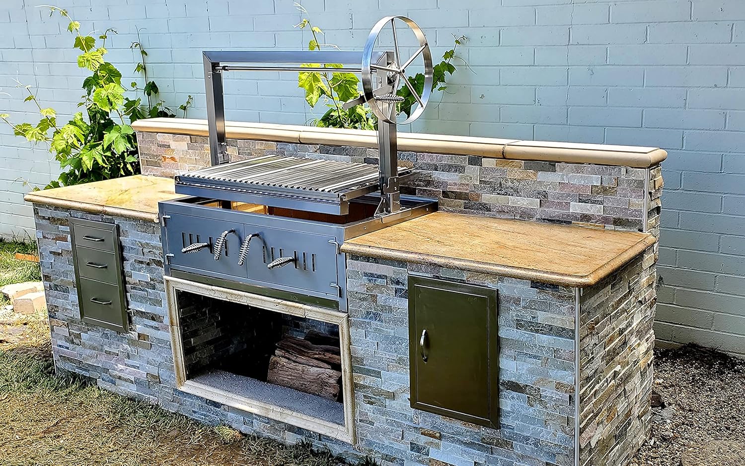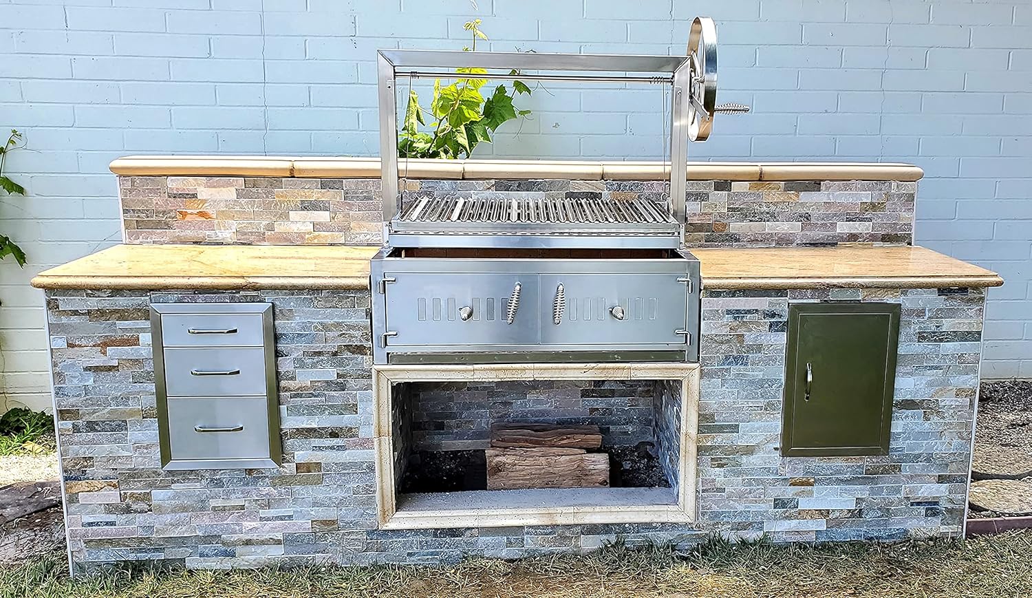 Built In/Table Top Charcoal Outdoor BBQ, Stainless Steel #430 Body and #304 Grates, Rotisserie Parrilla Santa Maria/Argentine Grill Spit B0813Z7GVG