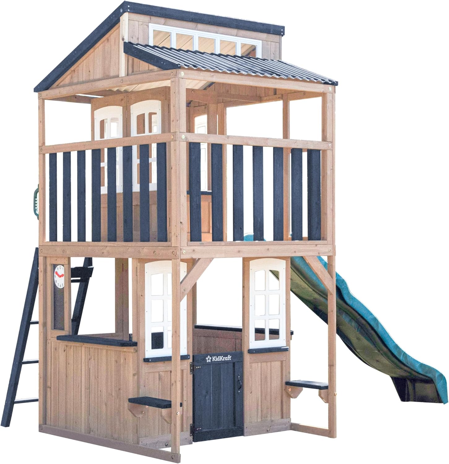 Cliffbrook Wooden Outdoor Two-Story Playhouse with Slide B0DXY63V33