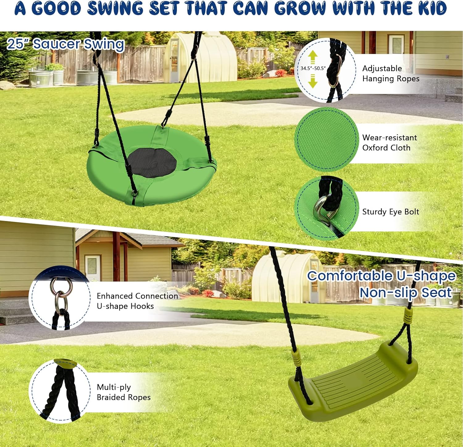 【A Big Surprise for Kids!】 Costzon large swing set will definitely be an ideal kid’s gift suitable for all seasons, whether used on birthday or festival. What’s more, the swing seat can be adjusted from 34.5” to 50.5” by hanging ropes, which is built to accompany kid’s growth and gives them a happy childhood. Note: […]