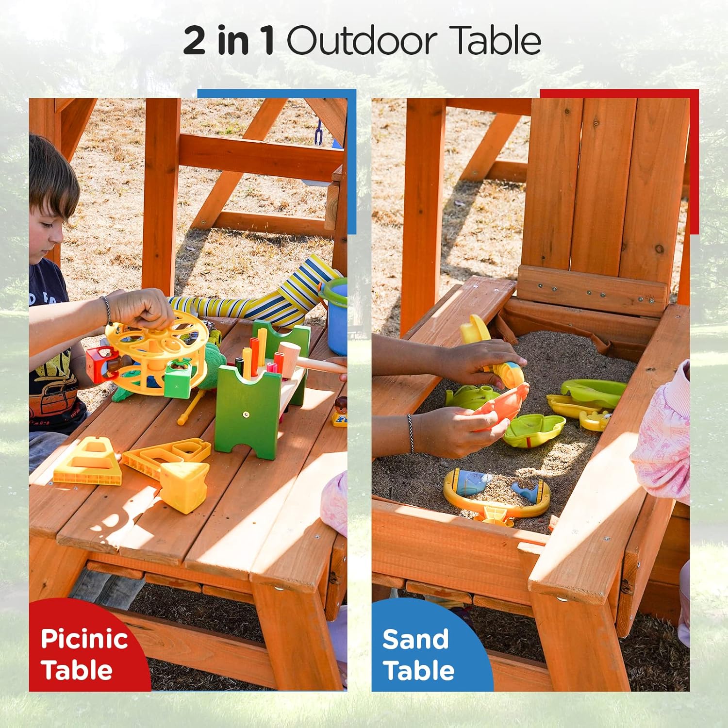Dolphin Playground Cedar Wooden Swing Sets for Backyard, Outdoor Playset for Kids with Monkey Bar, 2 in 1 Outdoor Table, Wave Slide, Climbing Wall, and 2 Belt Swings, Playground Sets for Backyards B0C8T7R87W