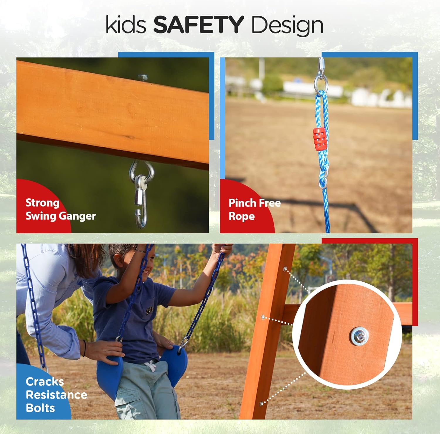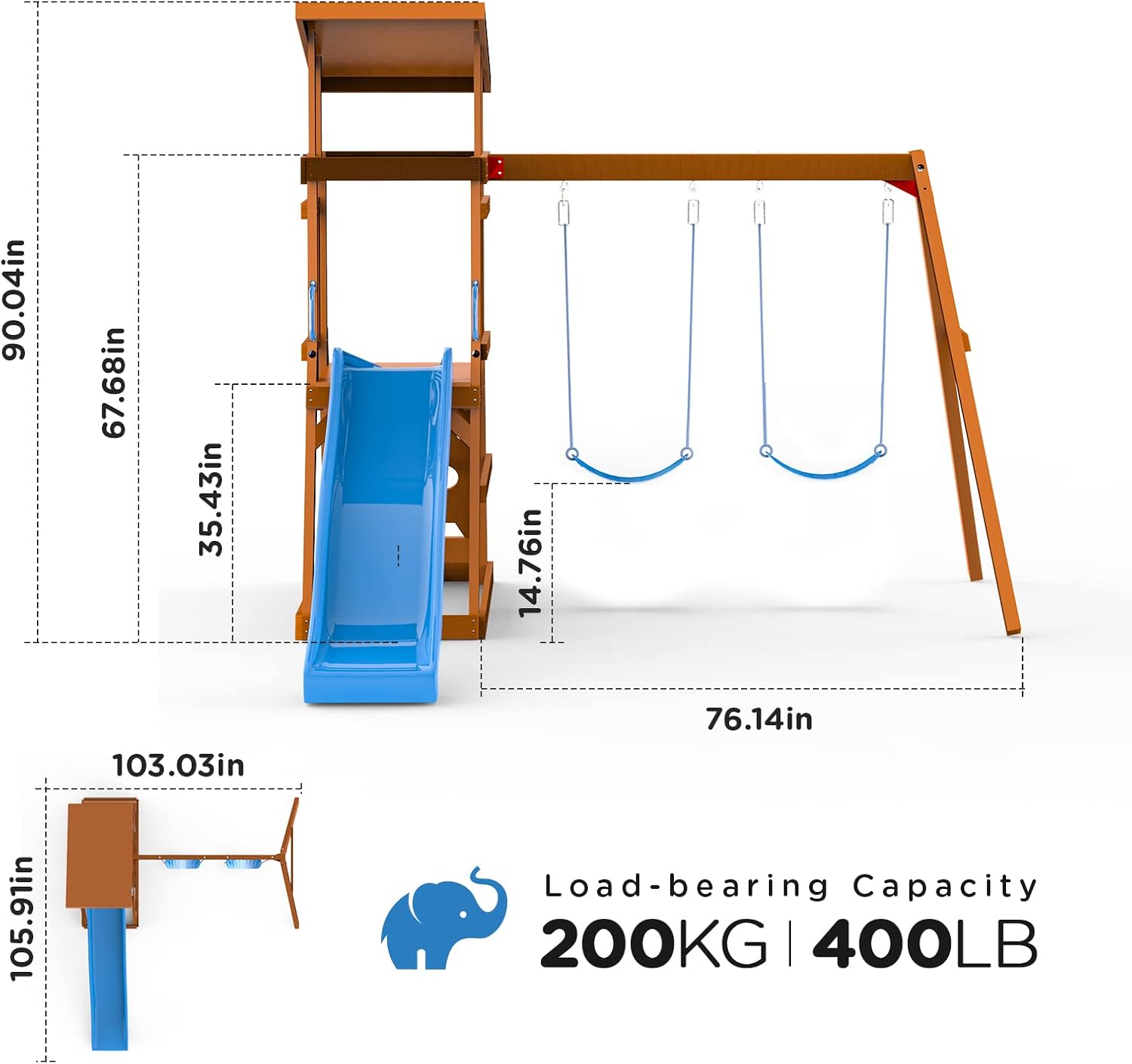 Dolphin Playground Wooden Swing Sets for Backyard, Outdoor Playset with Slide, Sand Box, Climbing Wall, and 2 Belt Swings, Playground Sets for Backyards, Young Kids Outdoor Play Equipment, Ages 3-9 B0C2TXYDLM