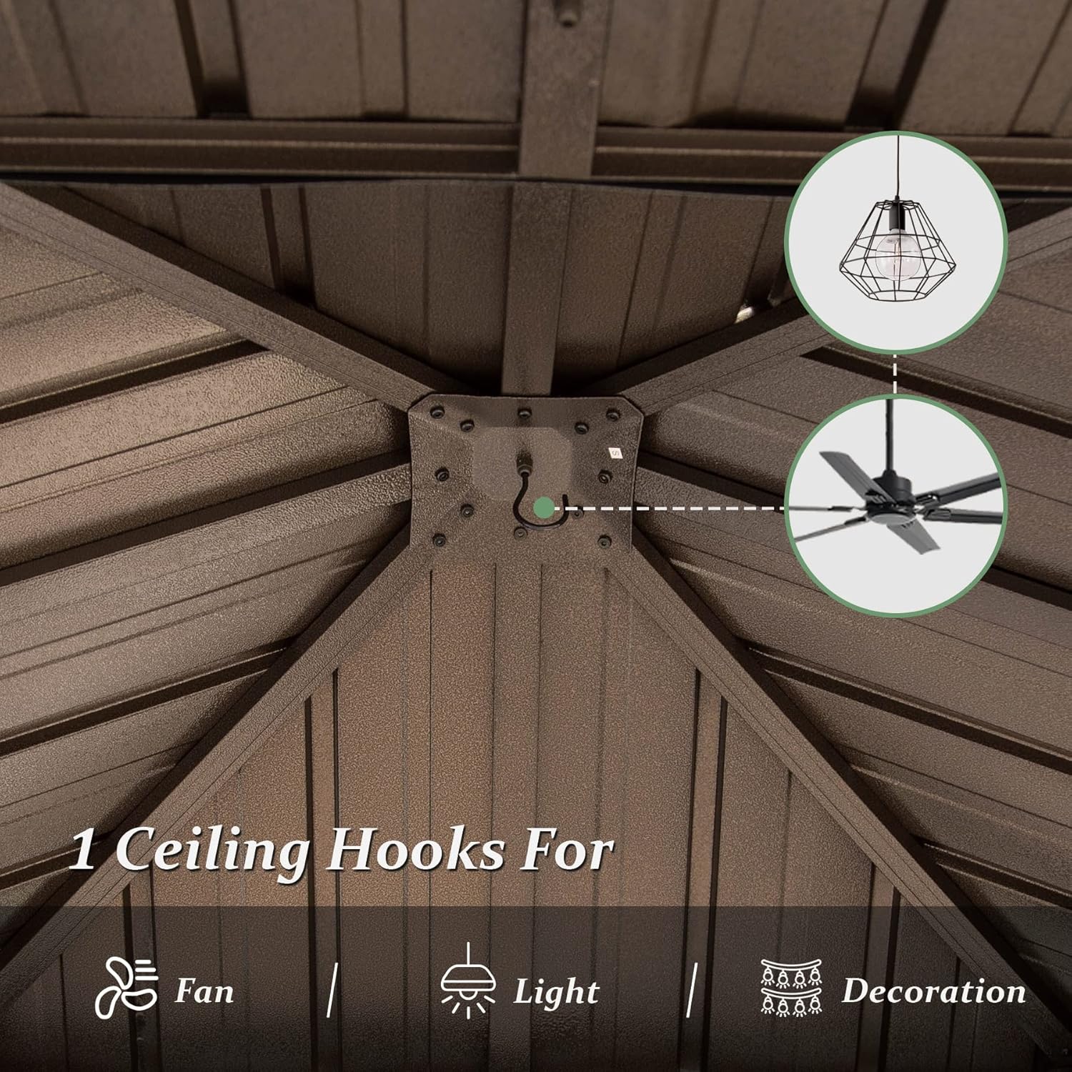 10×12 ft Cedar Wood Gazebo, Hardtop Gazebo with Galvanized Steel Peak Roof, Outdoor Pavilion for Snow Support, Wind Resistance, PowerPort, Shade for Garden, Patio, Deck B0F148BZPG