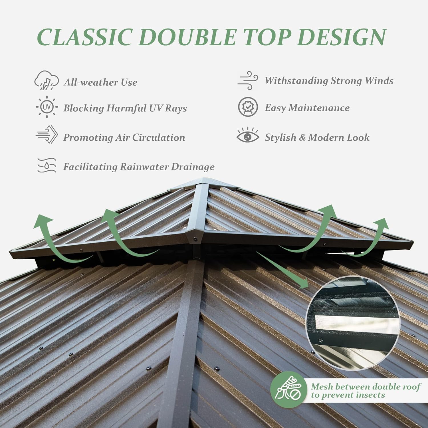 10’x 12’ Outdoor Wood Gazebo – Patio Hardtop Gazebo Permanent Wooden Pavilion with Galvanized Steel Double Roof, Cedar Wooden Gazebos for Garden, Lawn, Poolside, Backyard Deck B0DYD8HWWK
