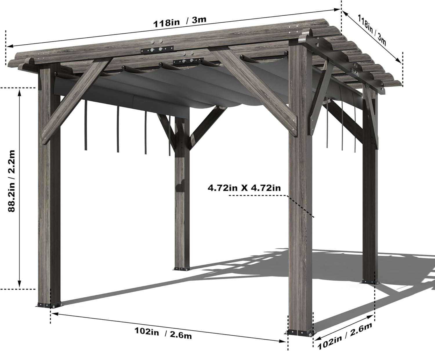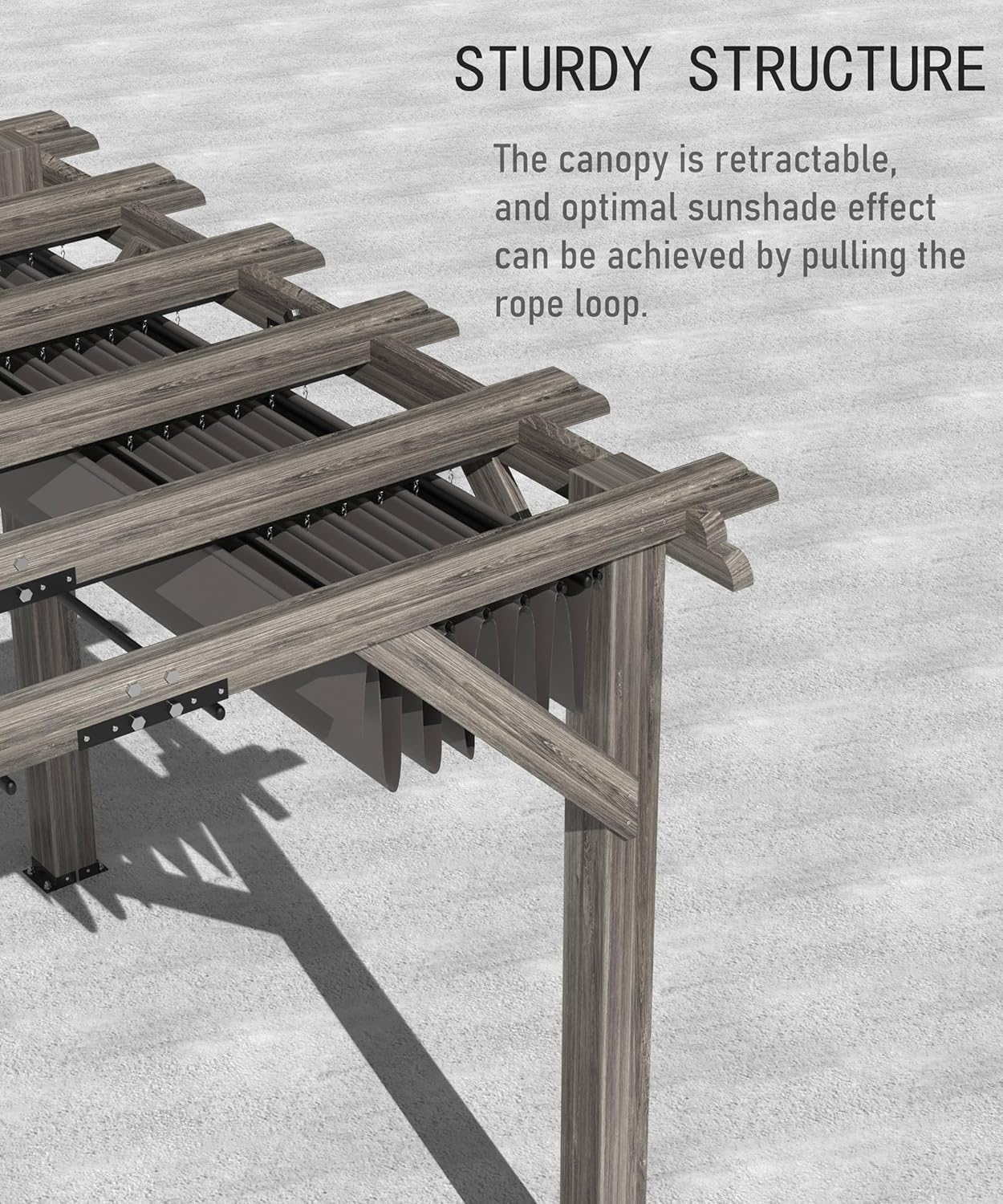 • 【Premium Fabric Material】: The top fabric of this wooden pergola is crafted from 600D Oxford cloth, perfectly matched with the wood frame for durability. Each fabric is PU-coated and all seams are sealed, offering exceptional tear resistance and long-lasting performance.