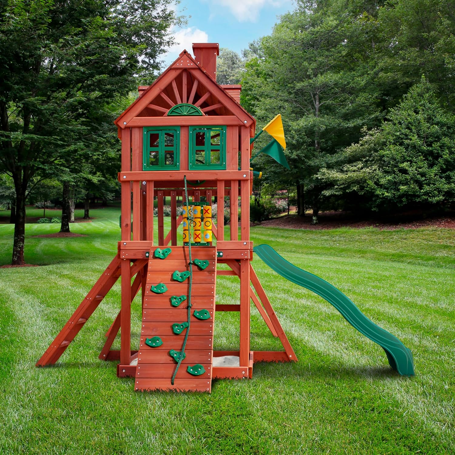Dream Solid Cedar Wood Swing Set | Jungle Gym with Clubhouse, Rock Wall, Wave Slide, Step Ladder, Accessory Arm Swings and Accessories | Easy Assembly, Pre-Assembled Components | Kids Playhouse (#2) B0BR64QM3Y