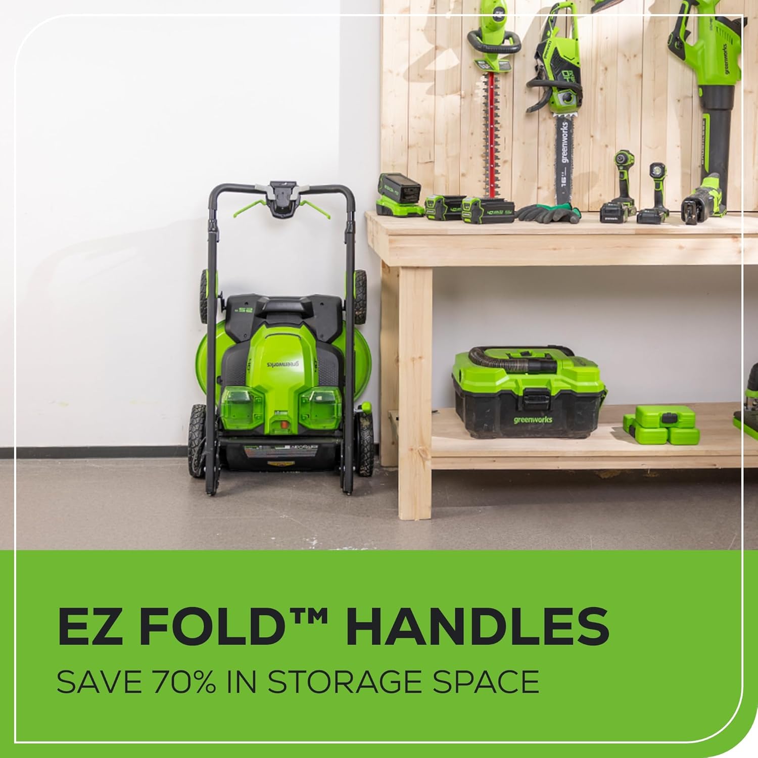 Greenworks 40V 25″ Brushless Cordless (Self-Propelled) Lawn Mower (75+ Compatible Tools), (2) 4.0Ah Batteries and Dual Port Rapid Charger Included B0BHWDLR4X