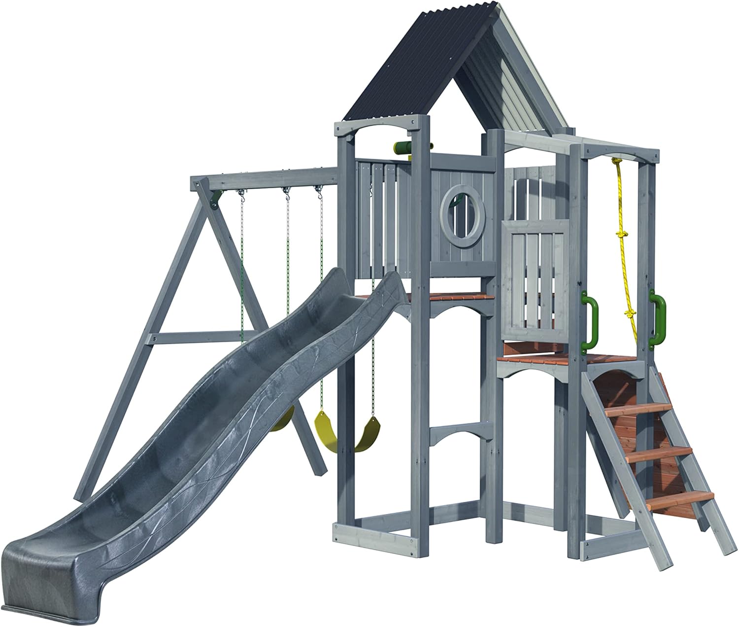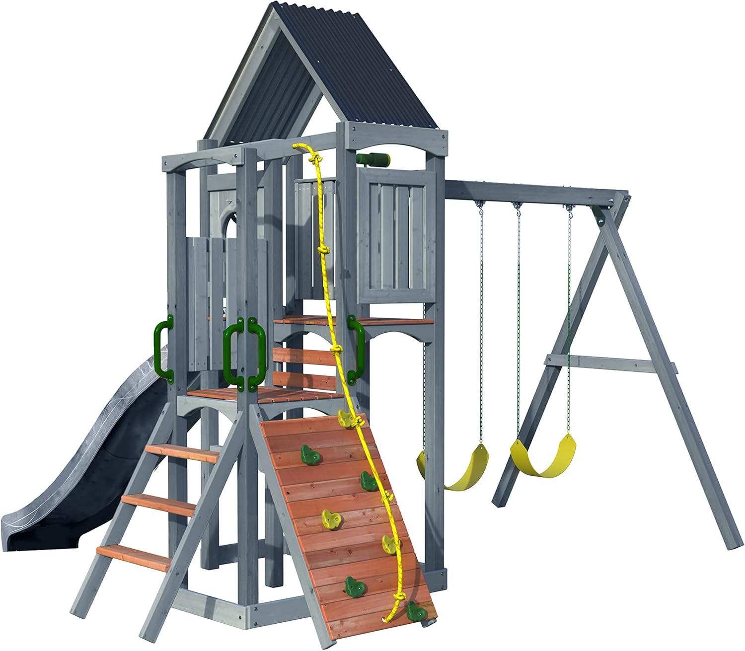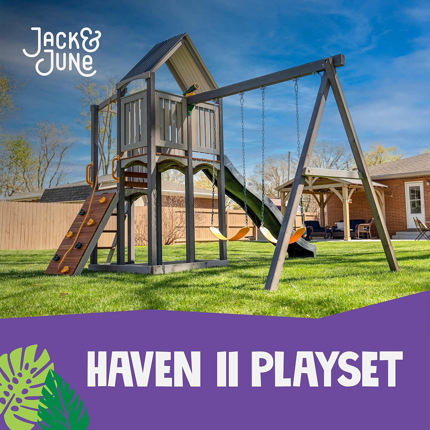 Jack & June Haven II Cedar Swingset with Swings, Slides, and Accessories – Backyard Outdoor Playground Equipment – 100% Cedar Wood – Multiple Playset Configurations for Kids of All Ages B09MZMM2XH