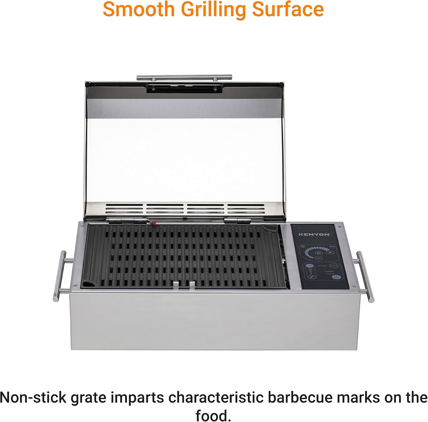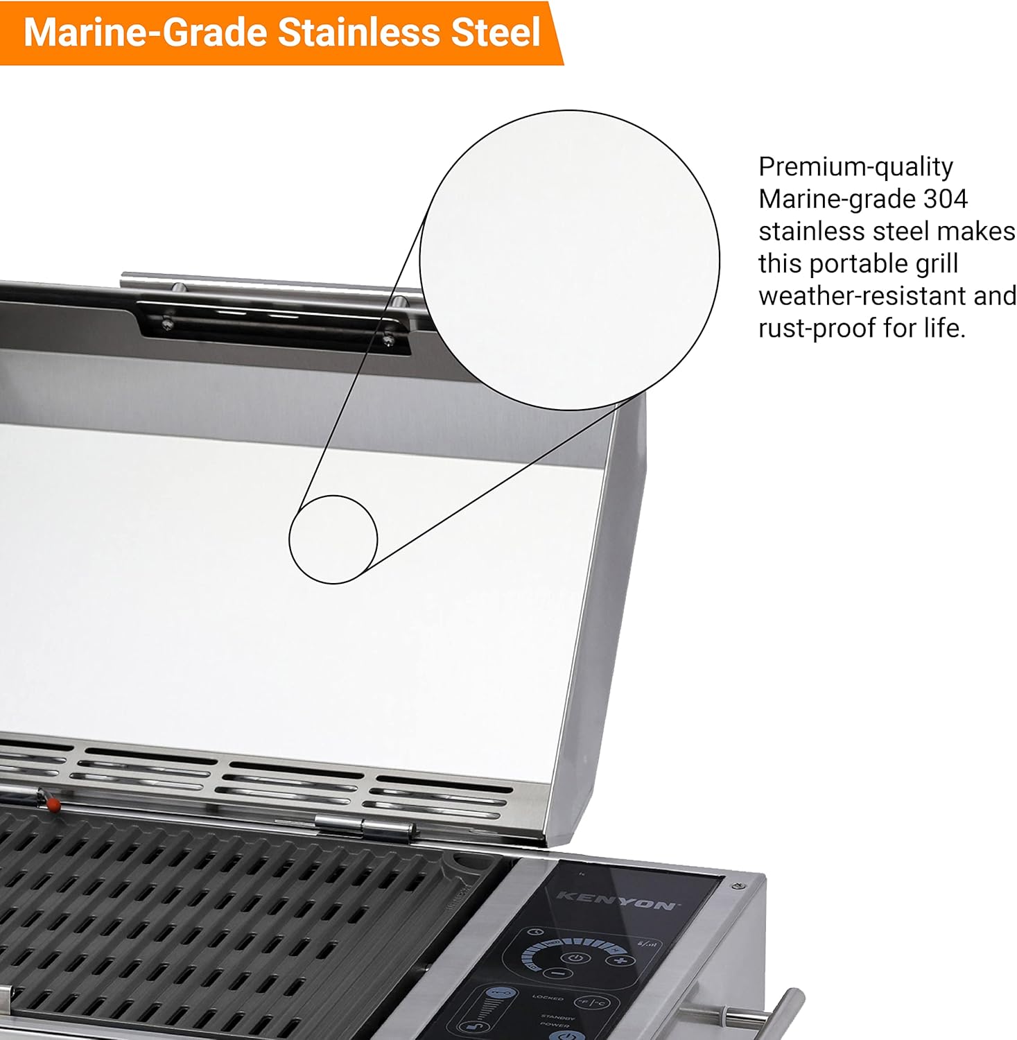 Kenyon Frontier Portable Electric Grill, Single Burner With IntelliKEN Touch Control, Stainless Steel Body, Rust-Proof Grill, UL-Approved For Indoor And Outdoor Use, Dishwasher Safe Grates, 120V B07SD914F9