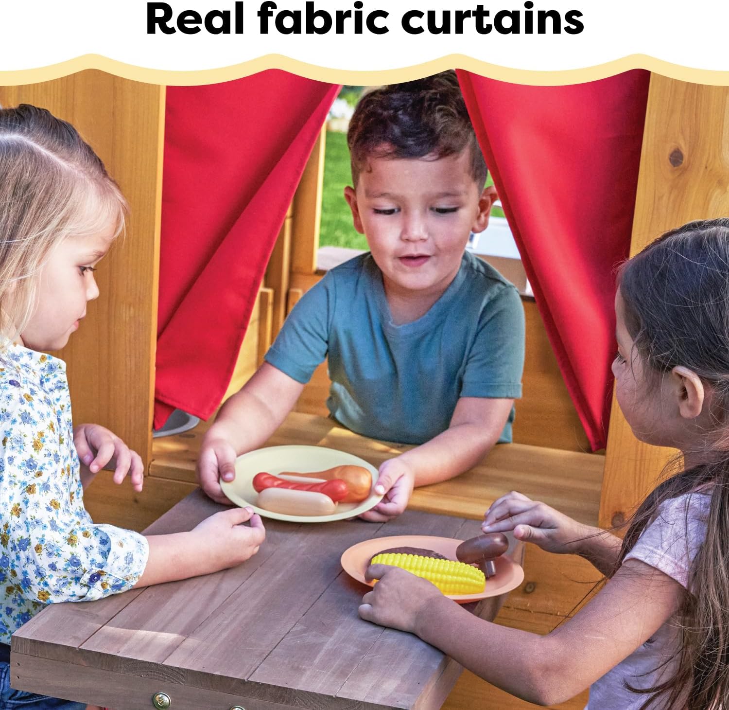 BUILT FOR OUTDOORS: Made to withstand the weather, this wooden playhouse is pre-treated with a water-based stain that includes UV and mold protection to hold up against the elements. HOMEY TOUCHES: Fabric curtains, a mailbox and chalkboard help make this outdoor playhouse feel like a real home. COOK & SERVE MEALS: A BBQ grill has […]