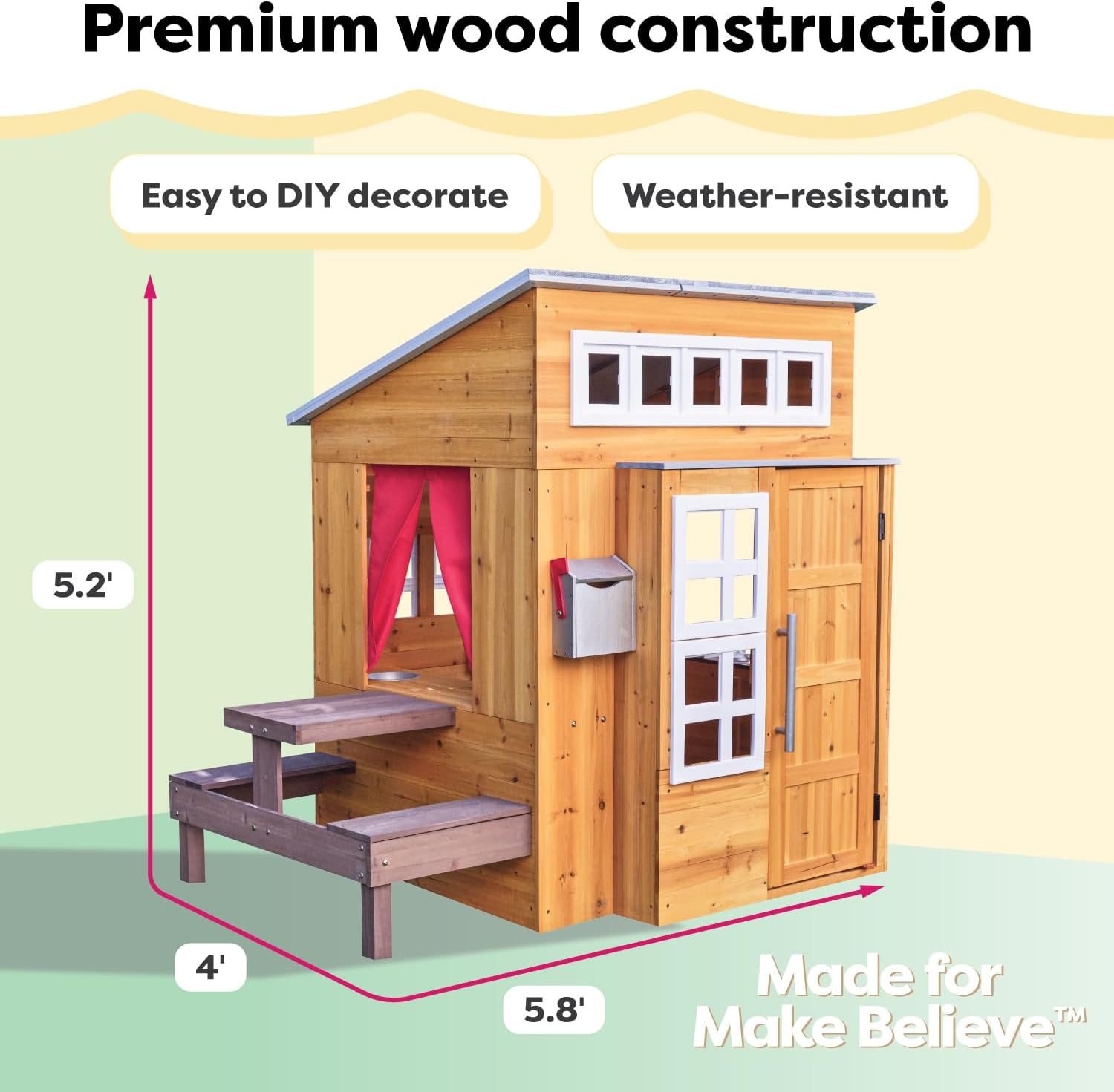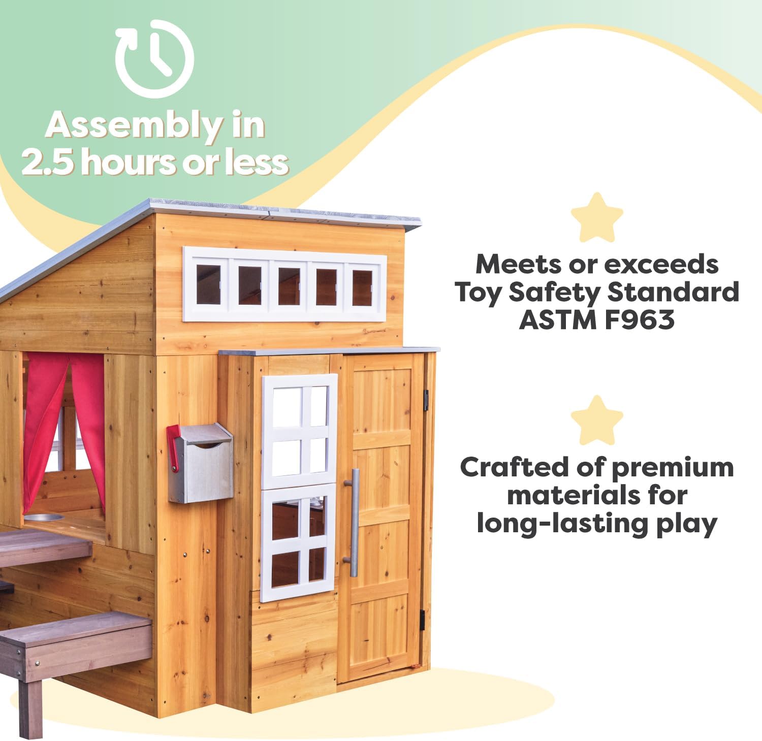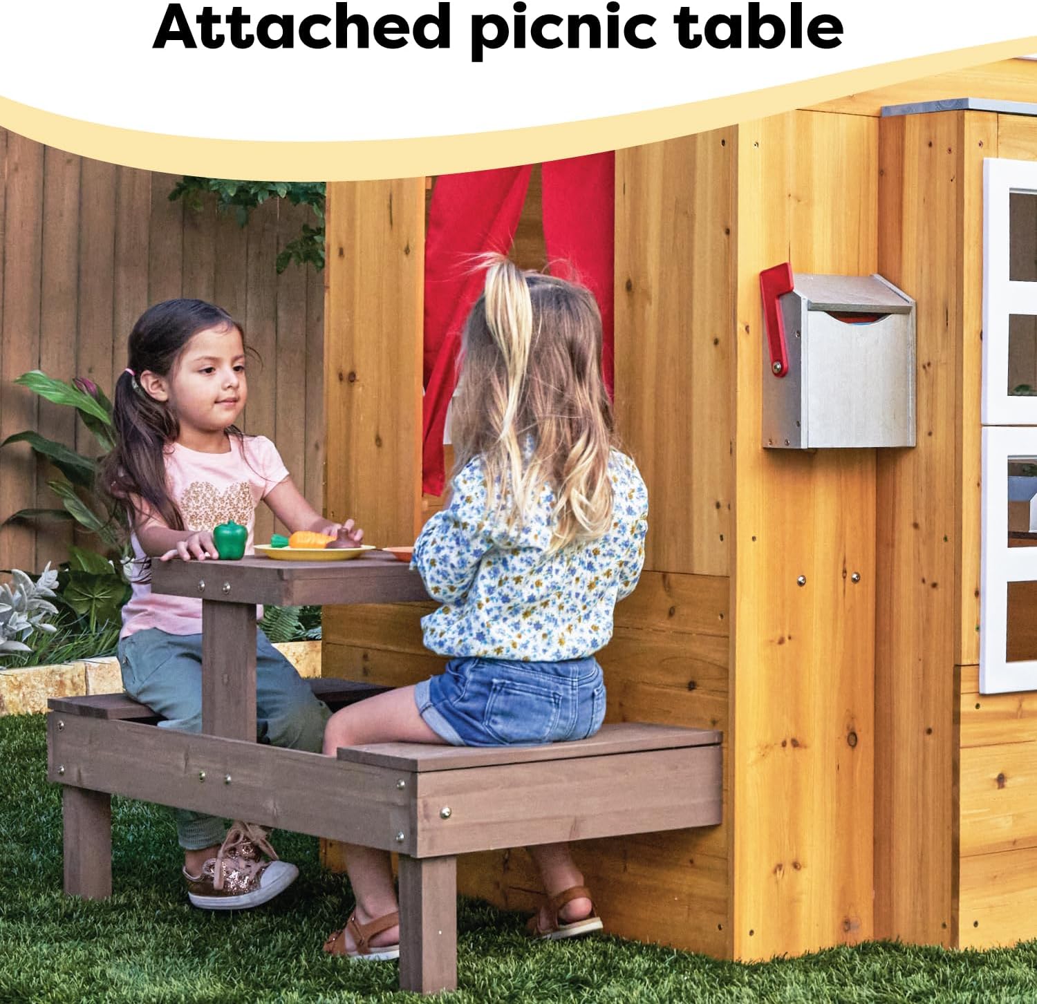 KidKraft Modern Outdoor Wooden Playhouse with Picnic Table, Mailbox and Outdoor Grill ,Gift for Ages 3+ B00JRYH3HS