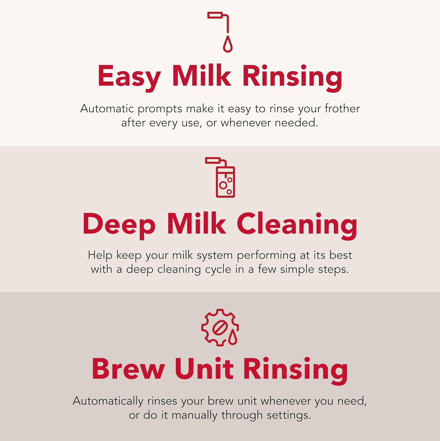 • Simply place the milk hose into a separate milk container of your choice and create personalized milk drinks with the dual drink delivery system – automatic milk frothing and heating feature gives you the exact amount of milk needed with the push of a button