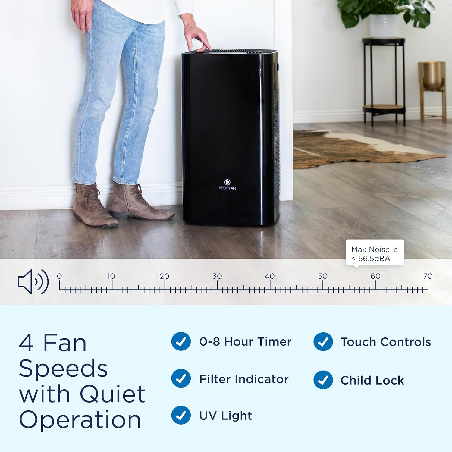 Medify MA-112 UV Light Air Purifier with True HEPA H14 Filter | 4,455 ft² Coverage in 1hr for Wildfires Smoke, Odors, Pollen, Pets | Removal to 0.1 Microns | Black, 1-Pack B09MRPPVBZ