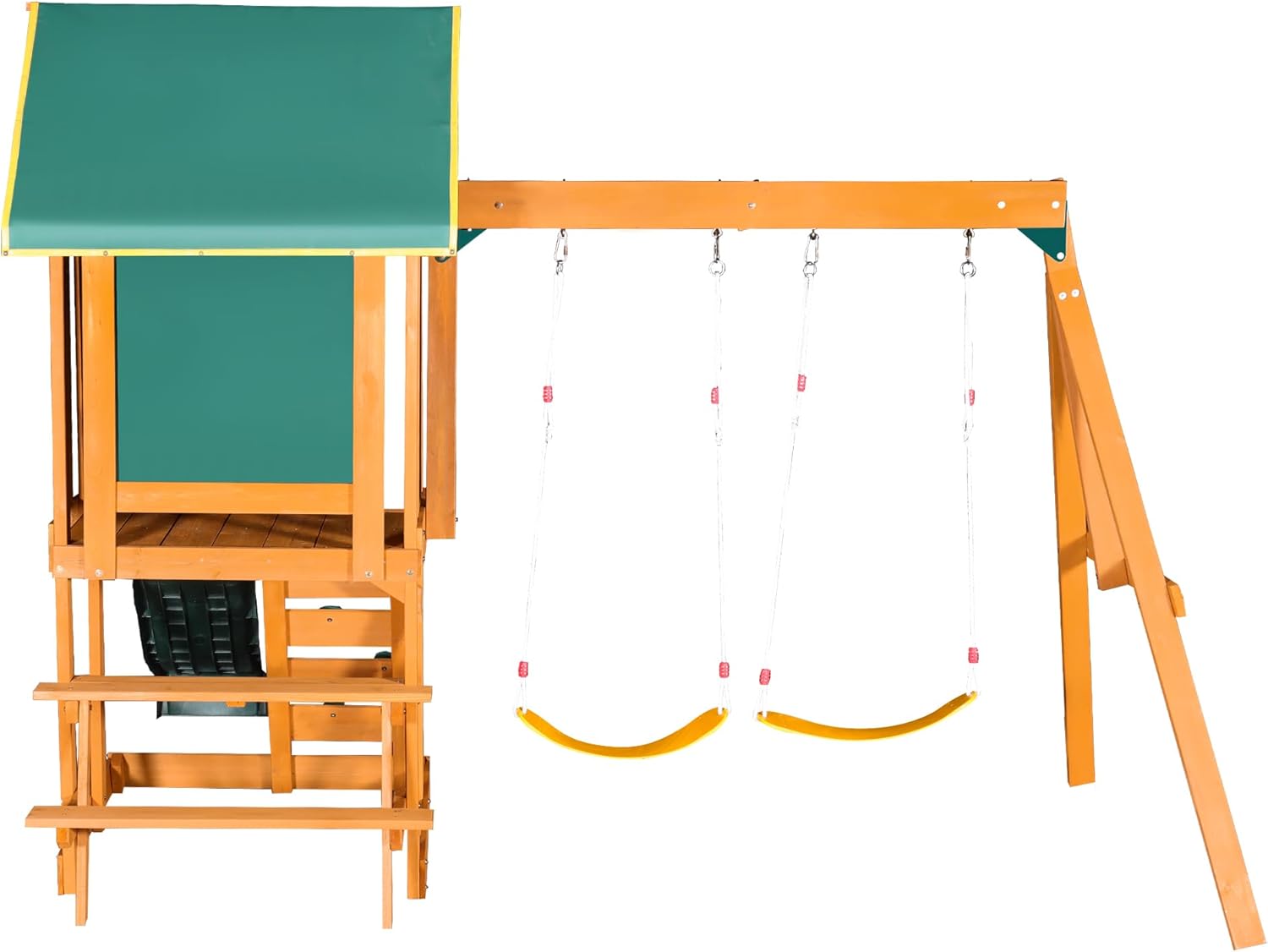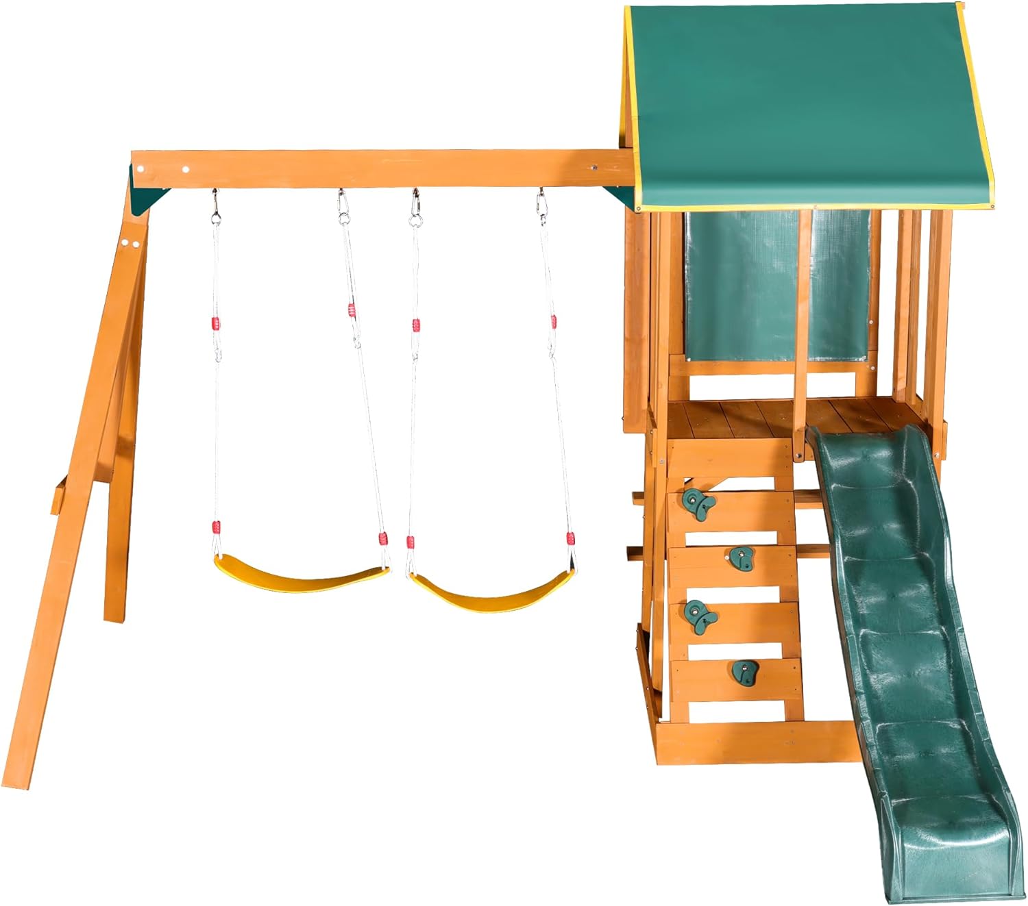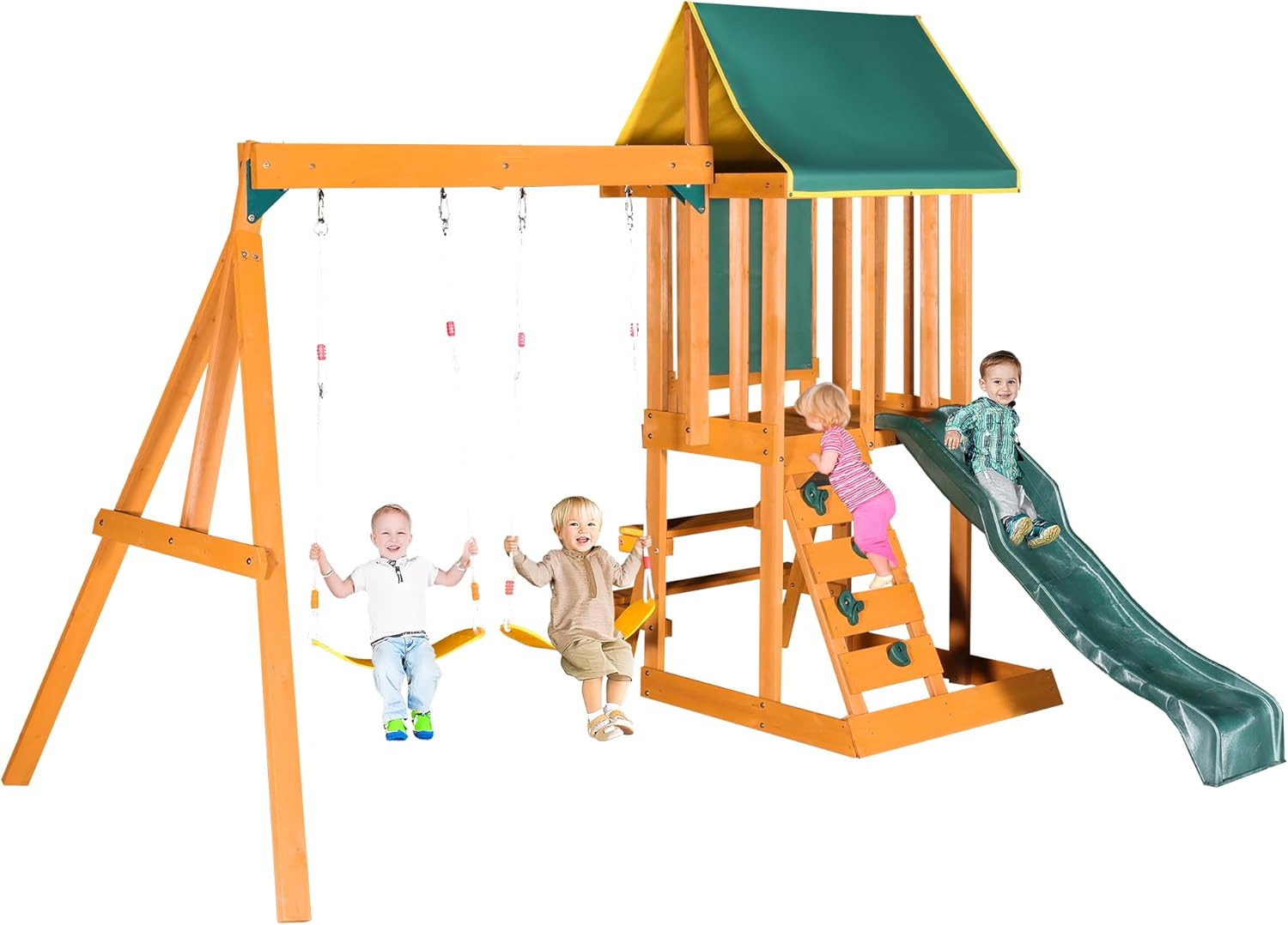 Merax Wooden Playground Sets for Backyards, 3 in 1 Swing and Slide and Climber Set Outdoor Playset for Garden Backyard, Green B0F43PLSV3
