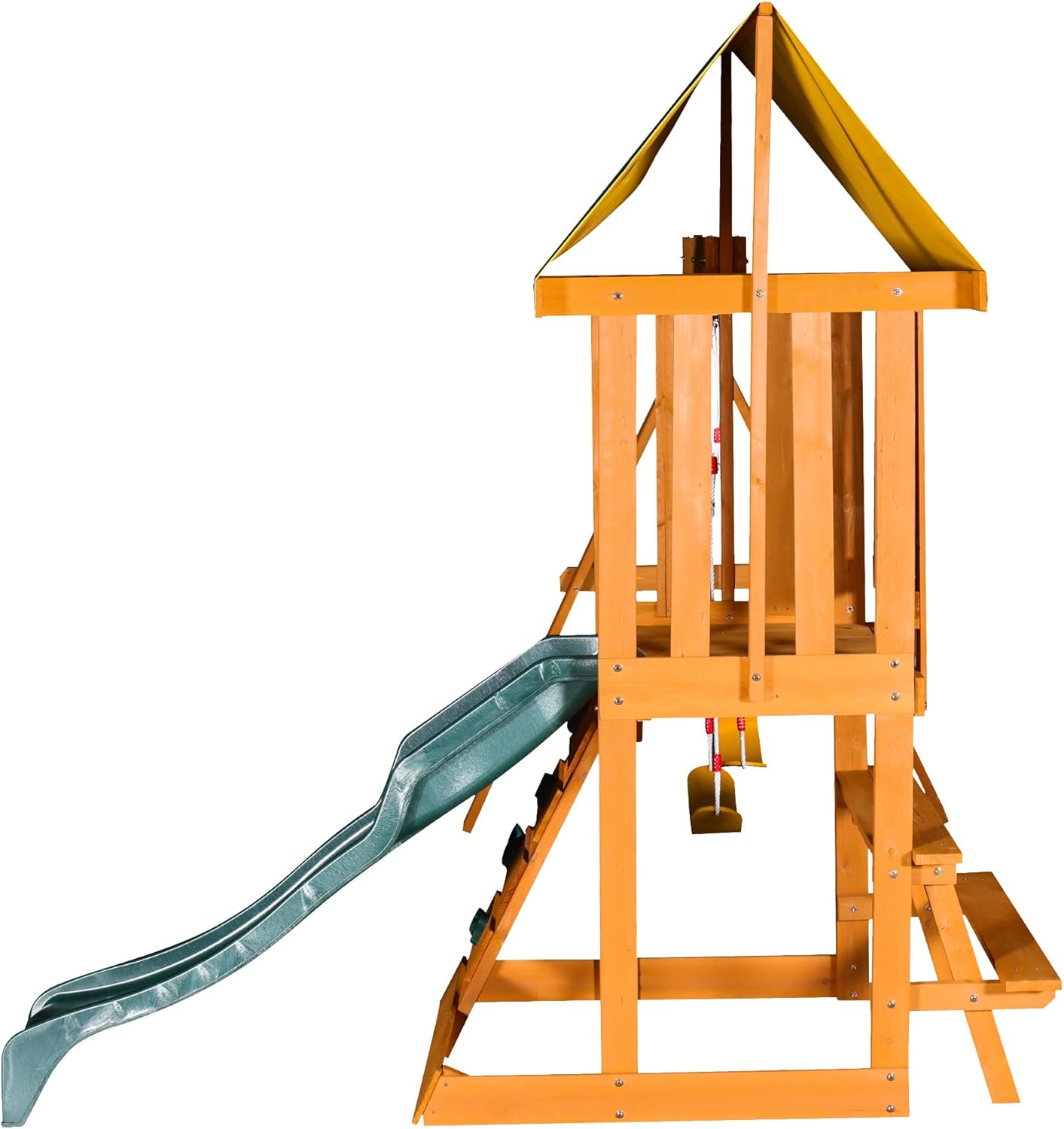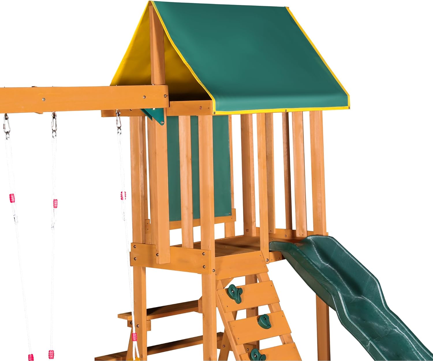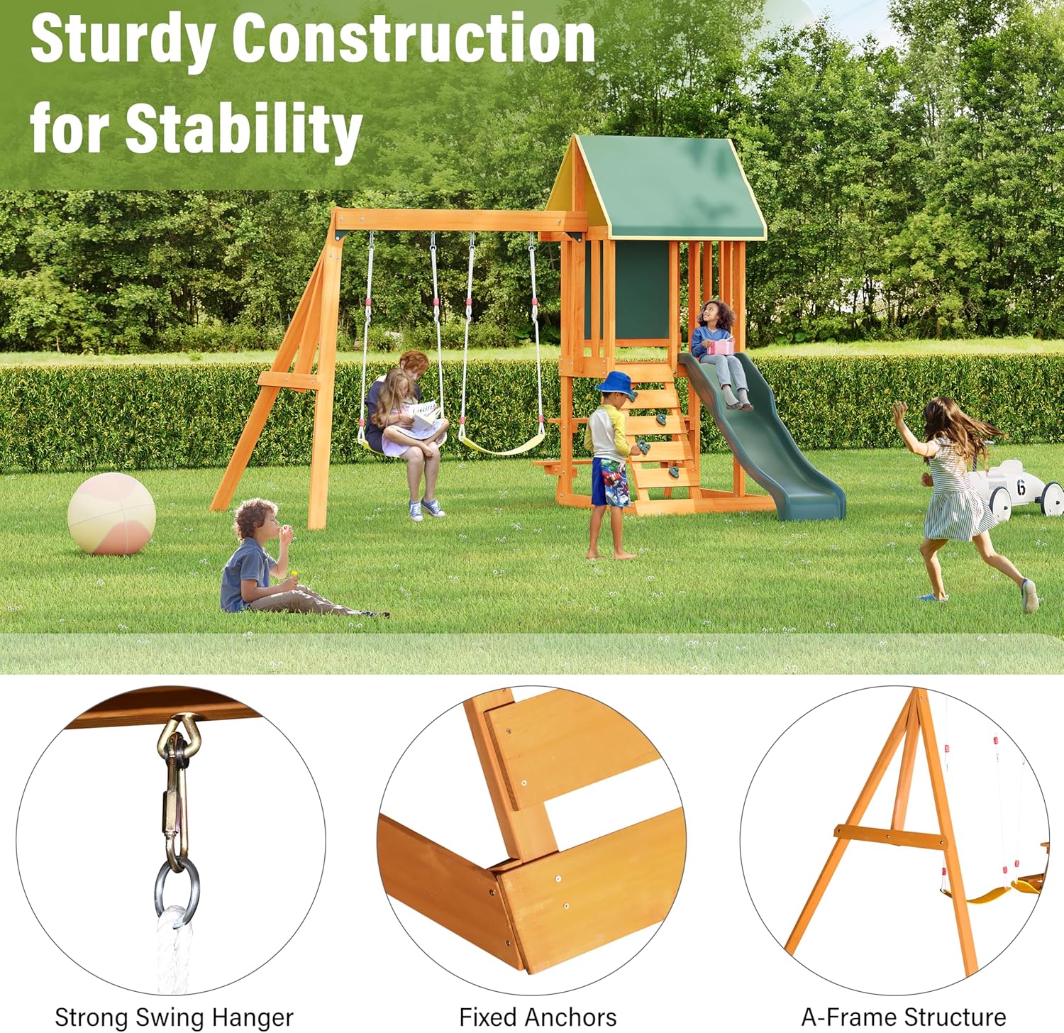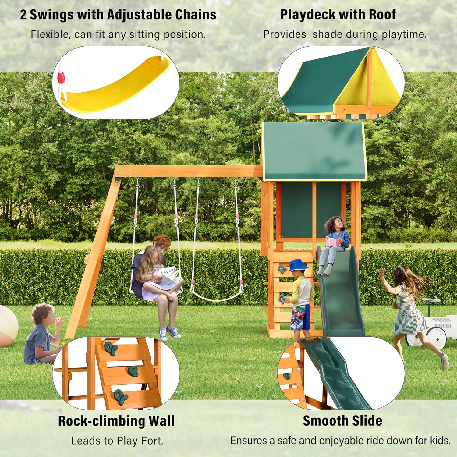 Merax Wooden Playground Sets for Backyards, 3 in 1 Swing and Slide and Climber Set Outdoor Playset for Garden Backyard, Green B0F43PLSV3