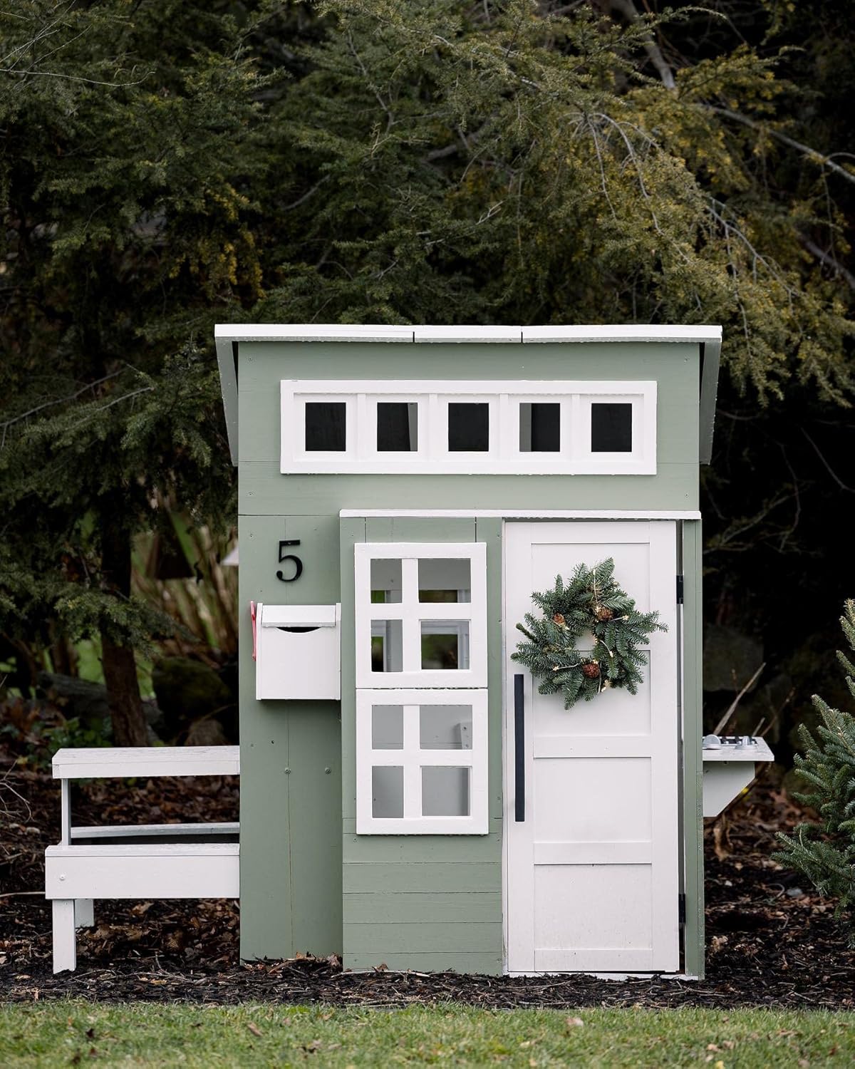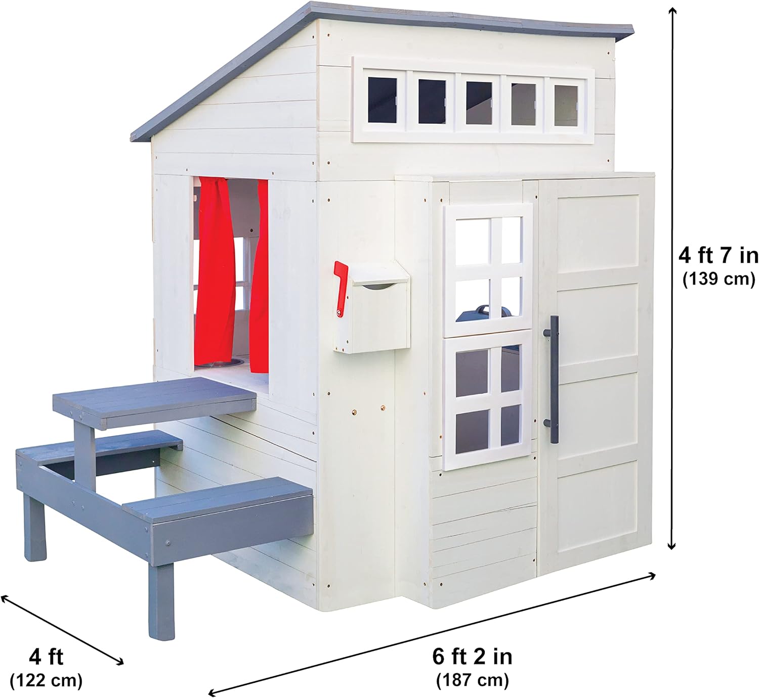 Modern Outdoor Wooden Playhouse with Picnic Table, Mailbox and Outdoor Grill, White B084KKZQNB