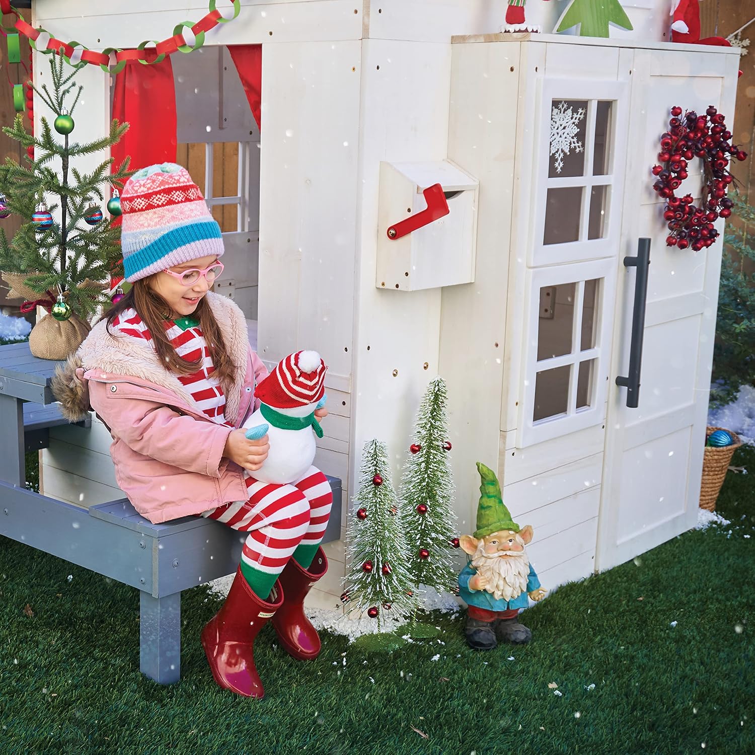 BUILT FOR OUTDOORS: Made to withstand the weather, this wooden playhouse is pre-treated with a water-based stain that includes UV and mold protection to hold up against the elements. HOMEY TOUCHES: Fabric curtains, a mailbox and chalkboard help make this outdoor playhouse feel like a real home. COOK & SERVE MEALS: A BBQ grill has […]