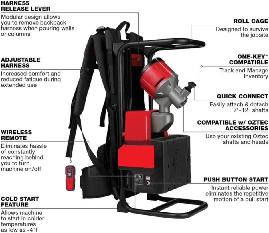 Power to Push 2-1/2 in Head No Pull Start, No Gas, No Engine Maintenance Consolidate up to 70 yds3 per charge w/ 1-1/2 in head & 7 ft Shaft 11,200 VPM; Consistently sustains above 10,000 VPM Consistent Starts, Most Reliable Pours Accepts shafts 7 ft – 21 ft Compatible with Oztec heads & shafts Easier […]