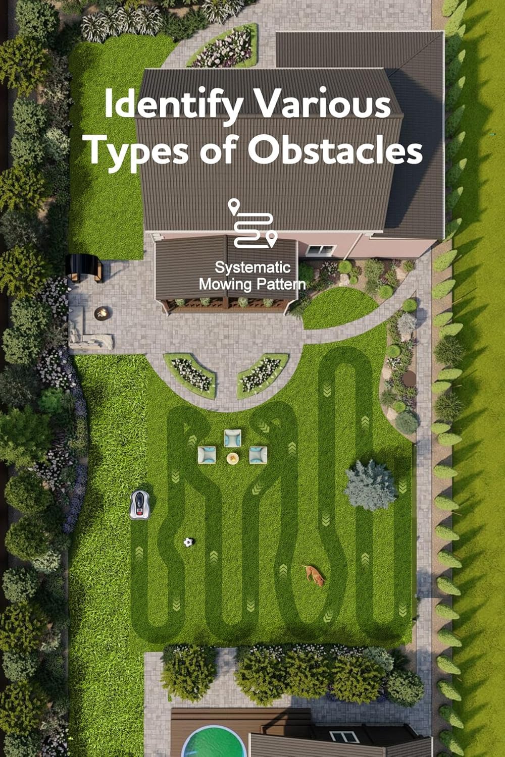 Smart Obstacle Avoidance:NOVABOT lawn robot mower uses high-definition camera and TOF sensor for precise obstacle avoidance and intelligent navigation. The lawn mower robot’s obstacle avoidance system ensures safe and efficient mowing. Plan pruning areas through the APP, avoid non-working areas, flexibly circumnavigate fences, walls, pets, trees, vehicles and other obstacles, cover multiple lawns and adjust the speed according to grass conditions.