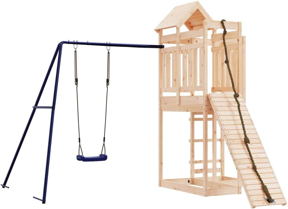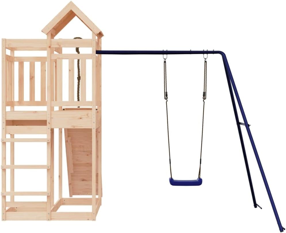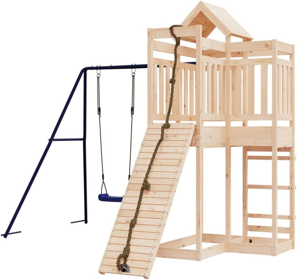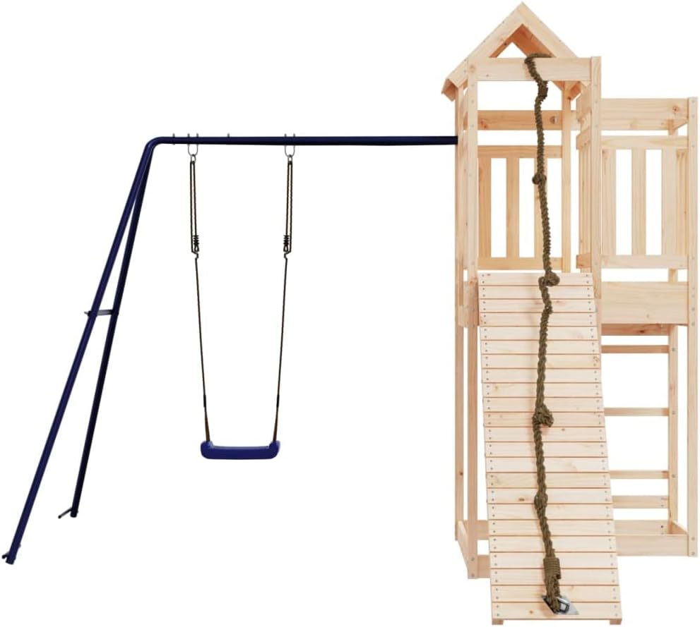 Outdoor Playset Solid Wood Pine, Garden Play Set with 1 Play Tower, 1 Climbing Wall, 1 Single Swing Set, Modern Outdoor Backyard Children’s Climbing Playground Playset(Style B) -AA B0CHNS87WW