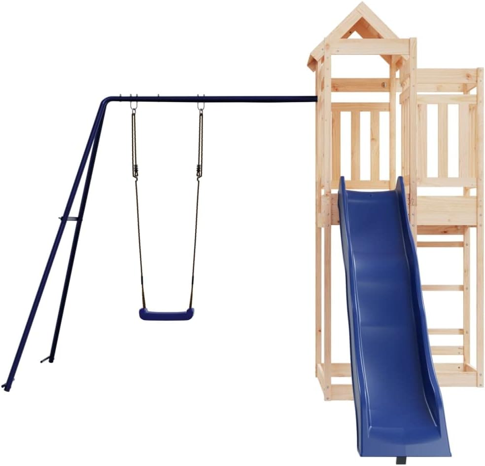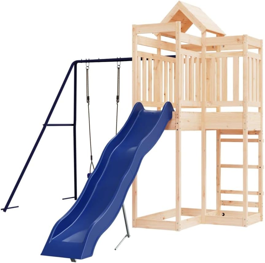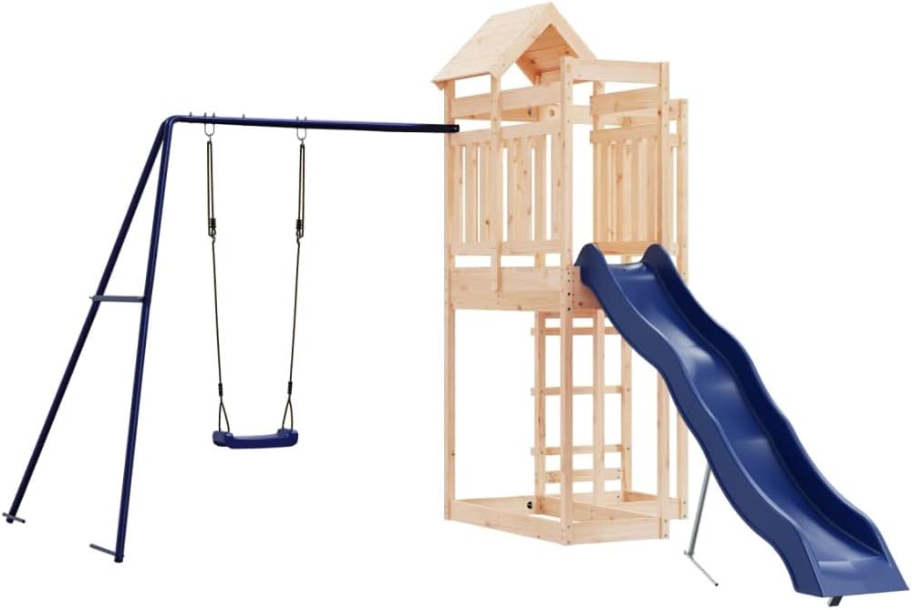 Outdoor Playset Solid Wood Pine, Garden Play Set with 1 Play Tower, 1 Wave Slide, 1 Single Swing Set, Modern Outdoor Backyard Children’s Climbing Wood Playground Playset,-4549 -AA B0CHNWZRC5