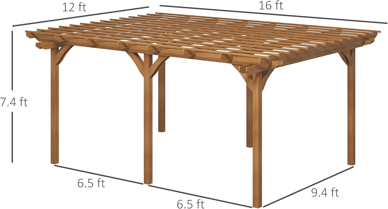 Outsunny 12′ x 16′ Outdoor Pergola, Wood Gazebo Grape Trellis with Stable Structure for Climbing Plant Support, Garden, Patio, Backyard, Deck B0CW2SZMDS