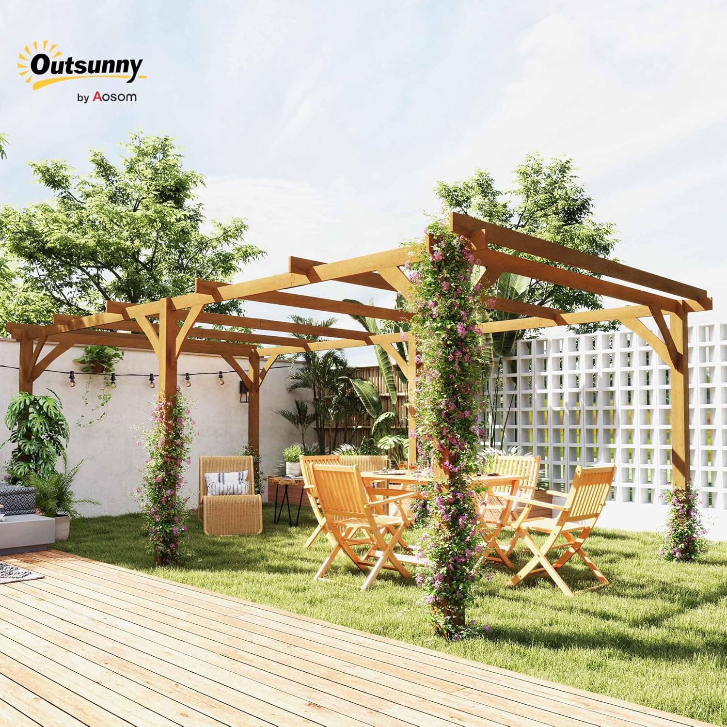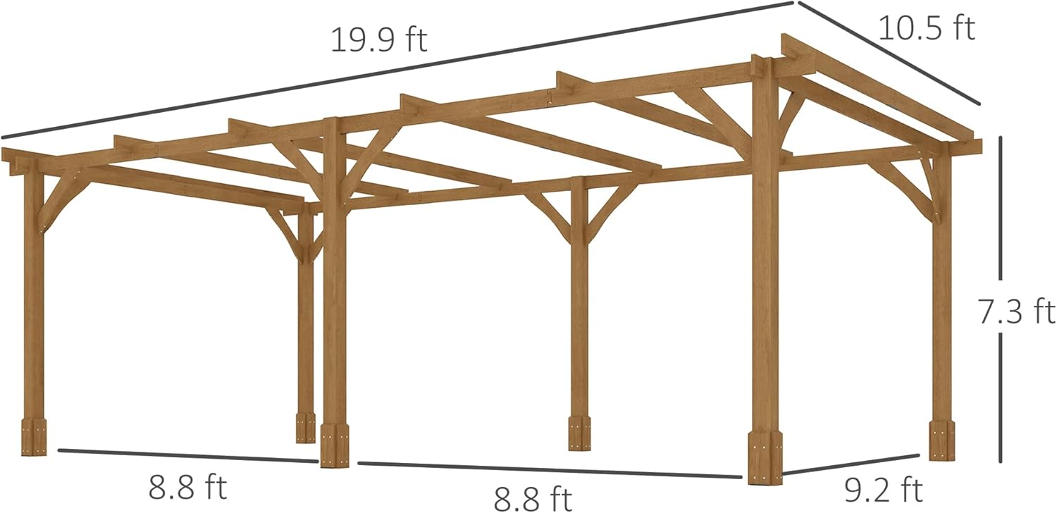 Outsunny 20′ x 10′ Outdoor Pergola, Wood Gazebo Grape Trellis with Stable Structure and Concrete Anchors for Climbing Plant Support, Garden, Patio, Backyard, Deck, Dark Brown B0DSF67X34