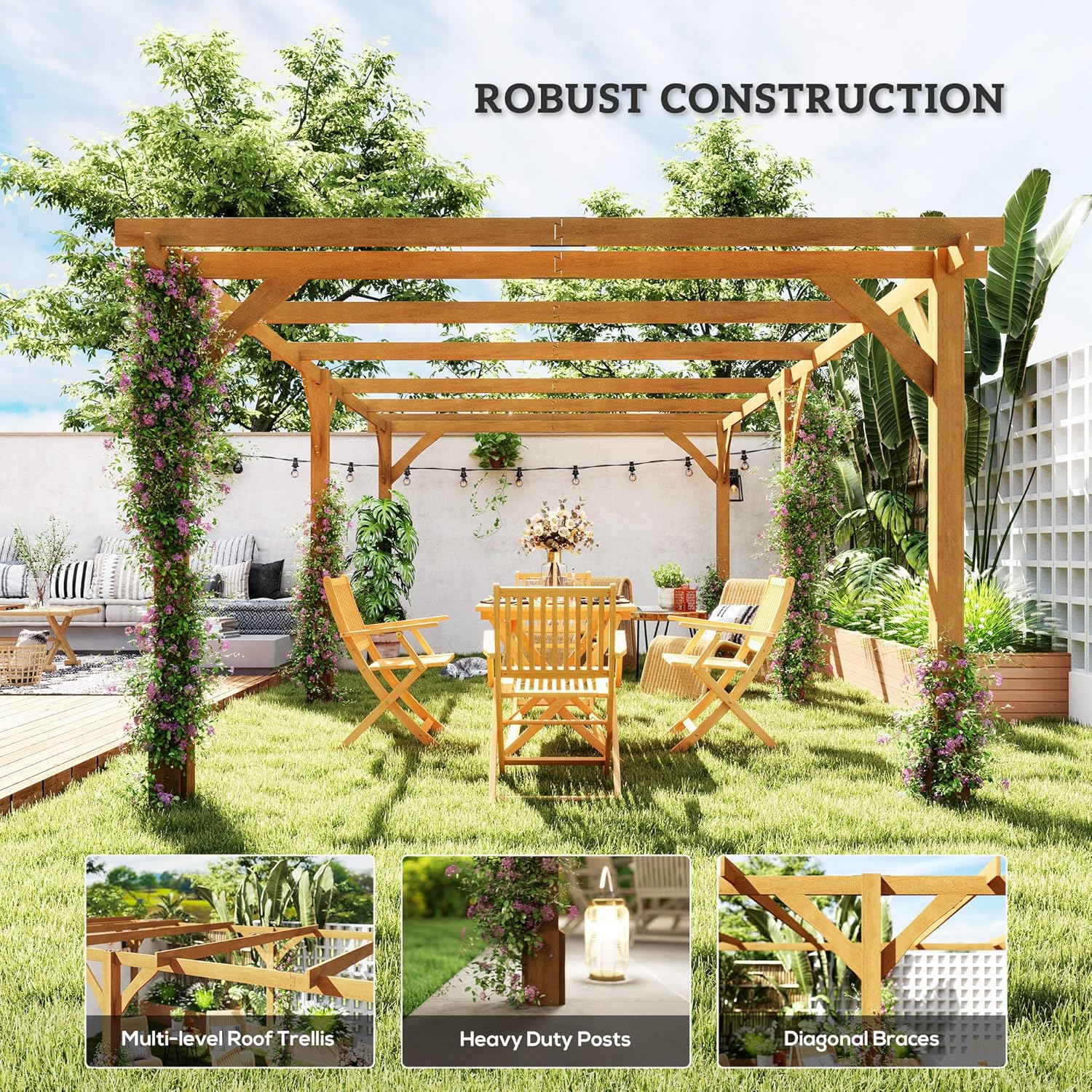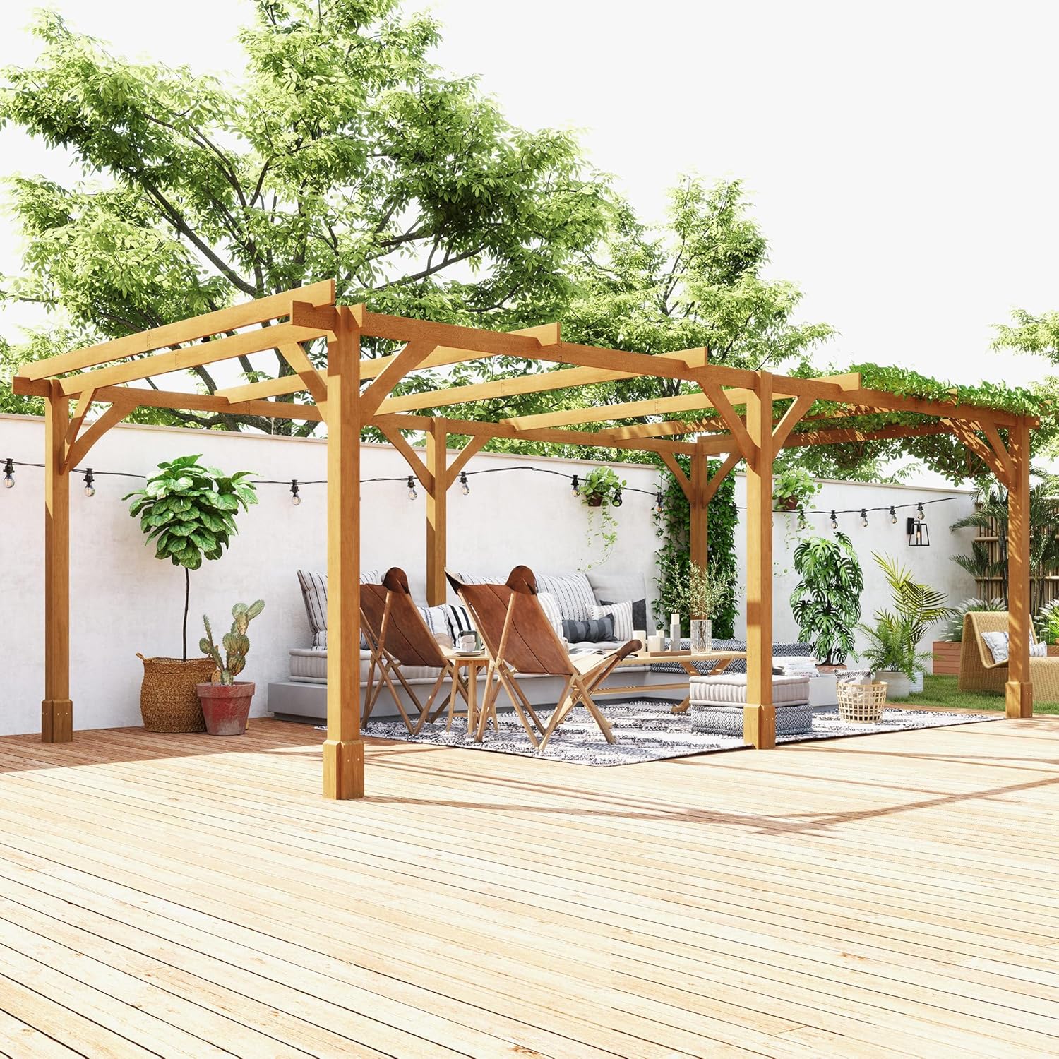 10×12 FT Wooden Pergola, Cedar Wood Gazebo with Flat Roof, Outdoor Garden Shelter with Stakes Included, Patio, Deck, Backyard, Lawn B0CTF6V96X