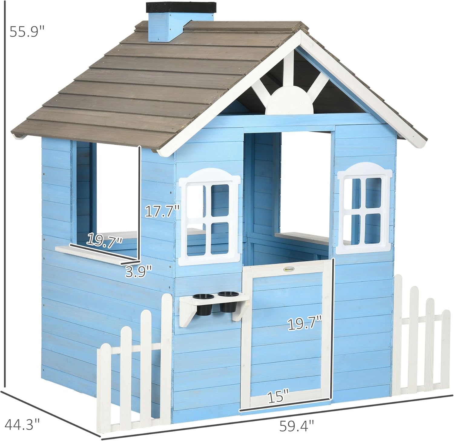Outsunny Playhouse for Kids Outdoor, Country Style Wooden Playhouse with Flower Pot Holders, Working Door, Windows, Service Stations for 3-7 Years, Blue B0CVQBHRYD