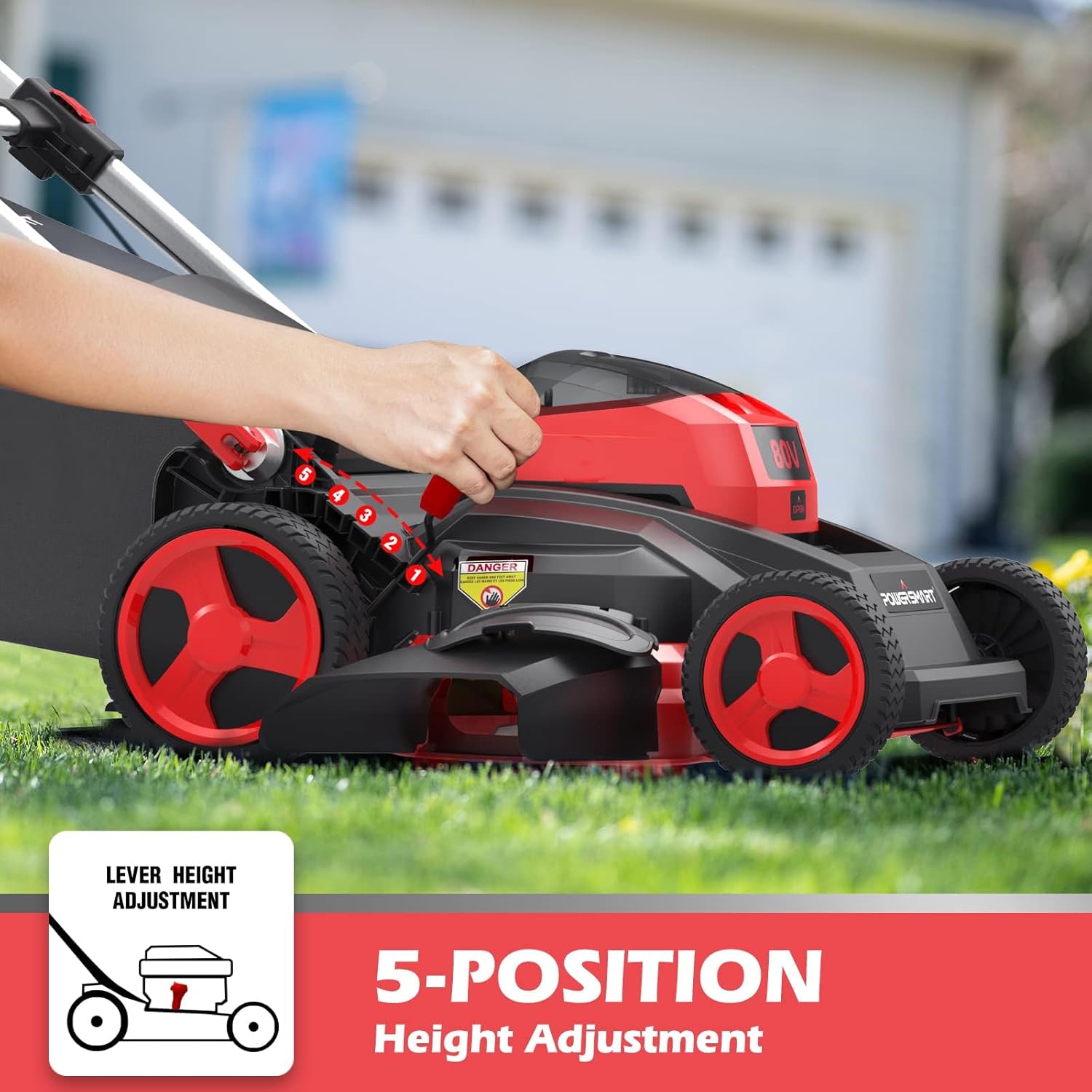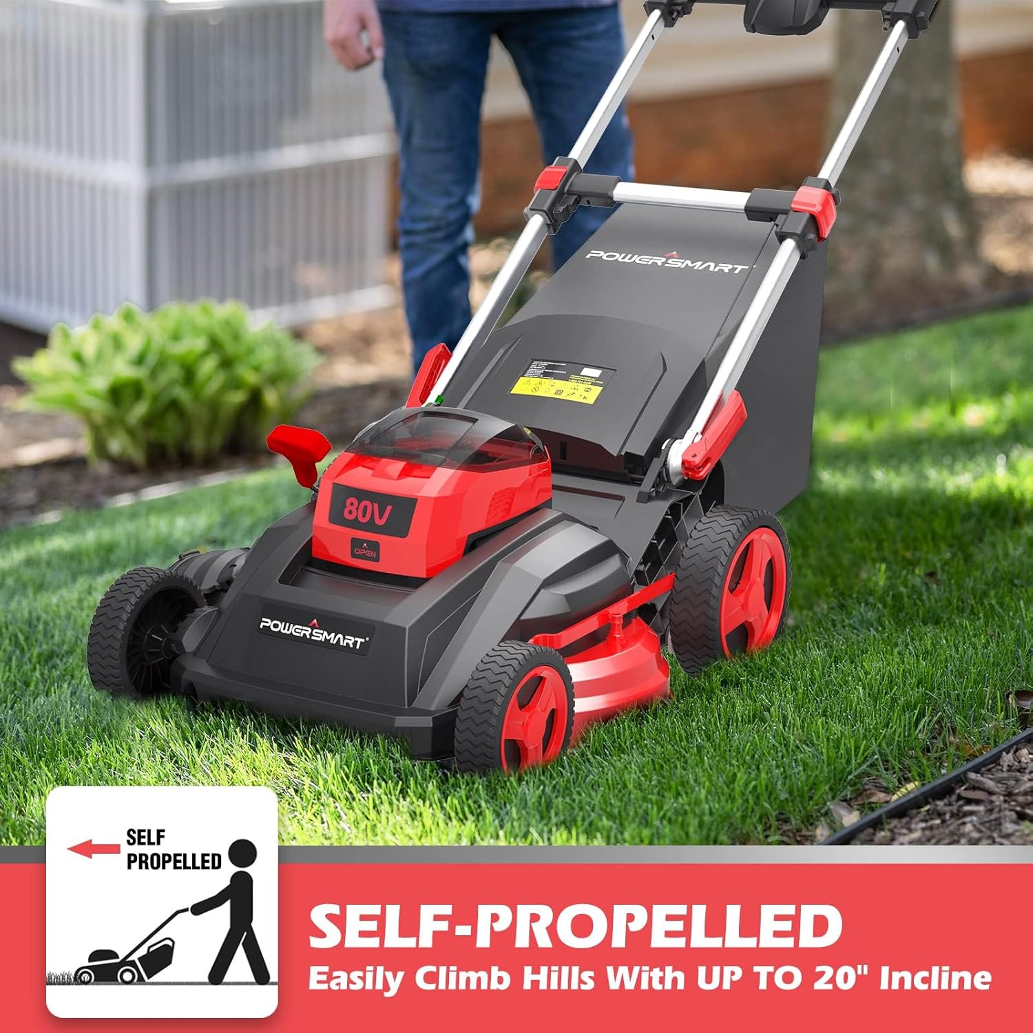 PowerSmart Lawn Mower – 80V Electric Lawn Mower, 26-Inch Electric Lawn Mower Cordless, Push Lawn Mower Lithium-Ion Dual-Force Cutting, Self Propelled Lawn Mower with 6.0Ah Battery & Charger for Garden B0CK1L3G32
