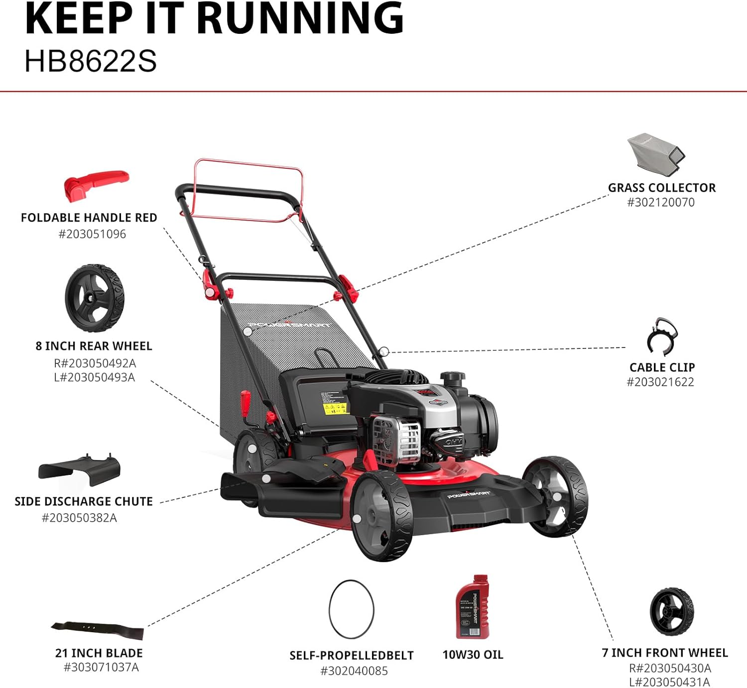 PowerSmart Self Propelled Gas Lawn Mower, 22-inch with 140cc Briggs and Stratton E550 Engine HB8622S B0D8HZ8GXP