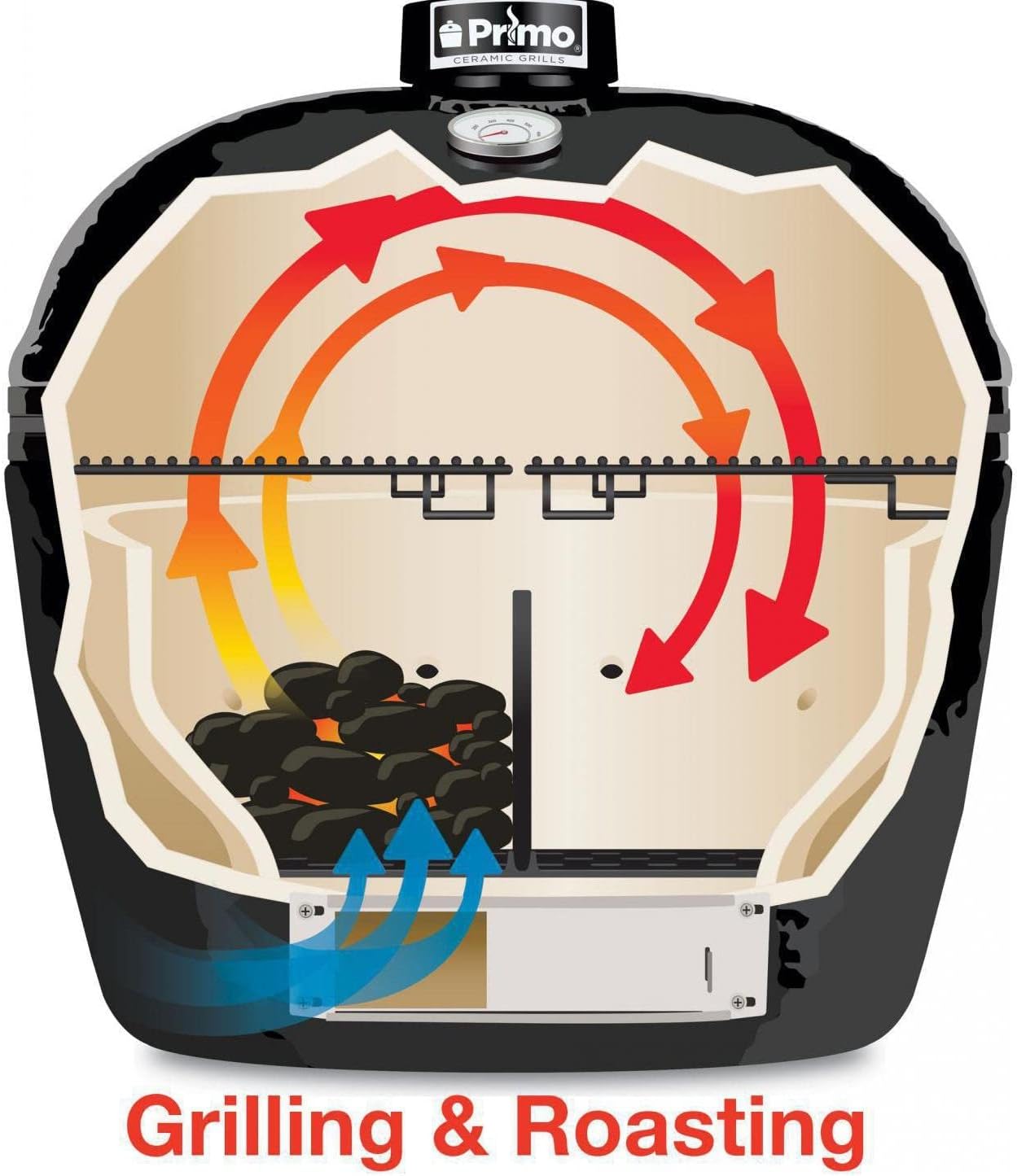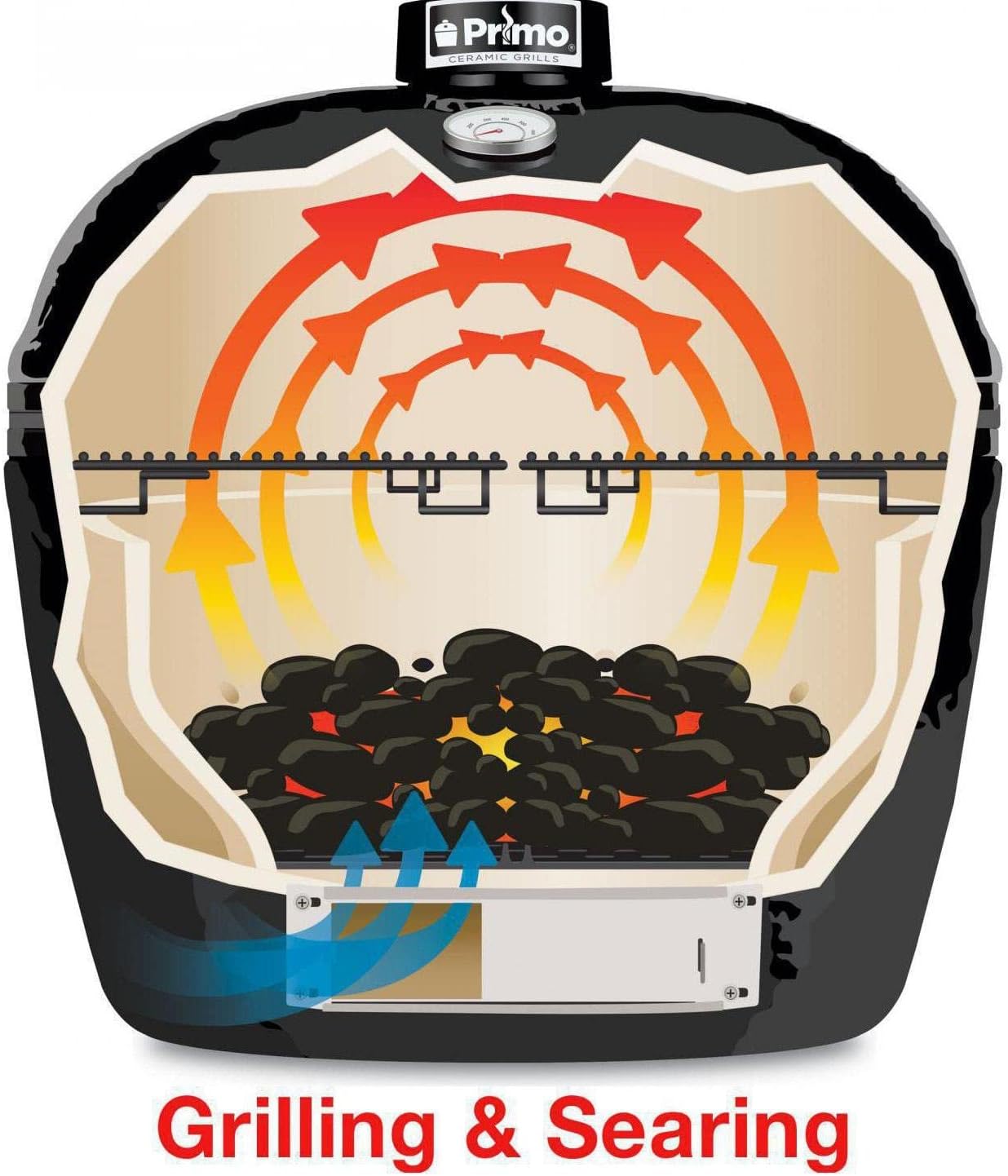 Primo X-Large Oval Ceramic Charcoal Grill Head Can Be Used as a Grill, Oven, Roaster, or Smoker Premium-Grade Ceramics Patented Oval Shape Fuel Type: Lump Charcoal Only
