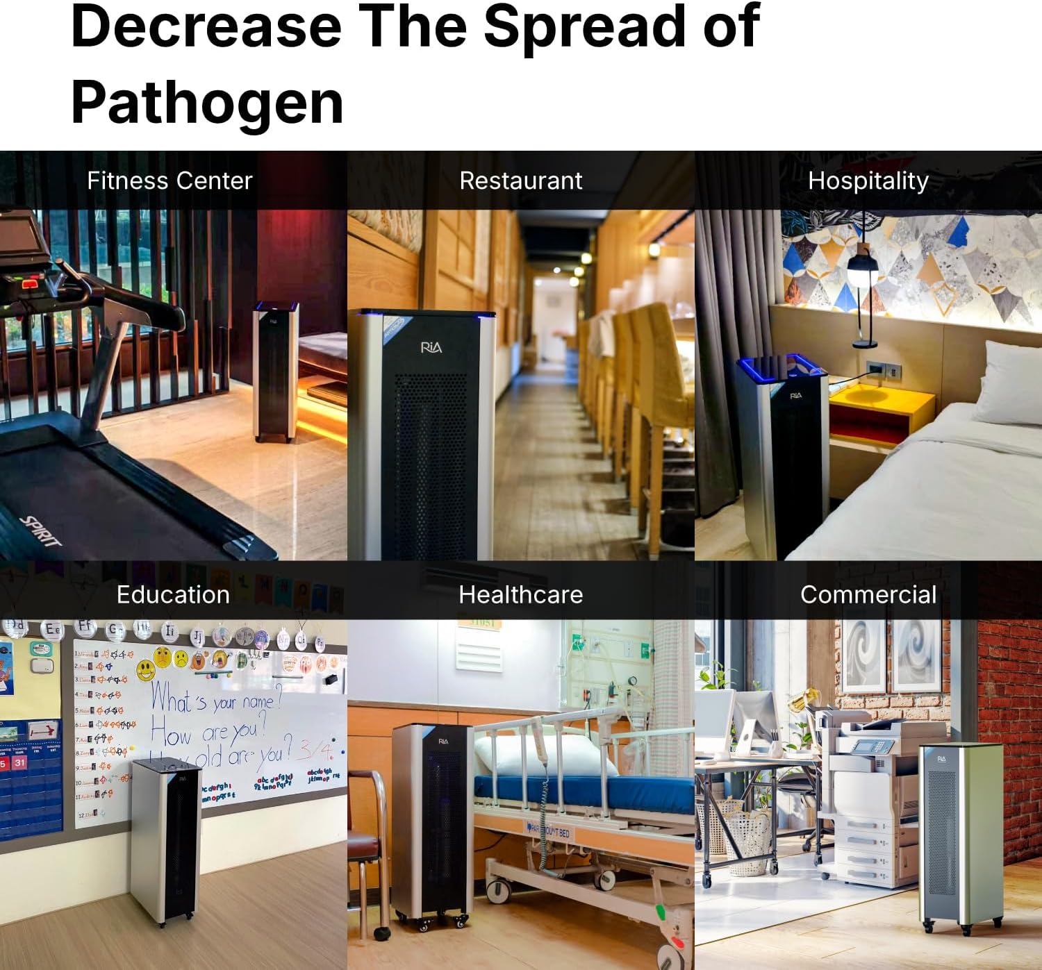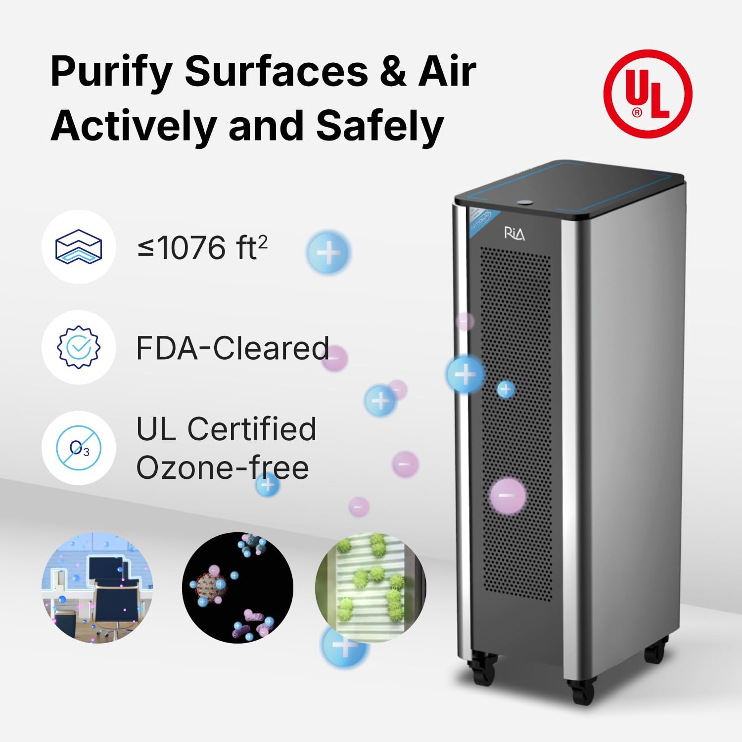 RIA Air Purifier SafeGuard with AtmosAir Bi-Polar Ionization Technology, Quiet Industrial-Grade Air Cleaner for Commercial Buildings up to 1000 SqFt, Captures Tiniest Particles B0D31VV4K5