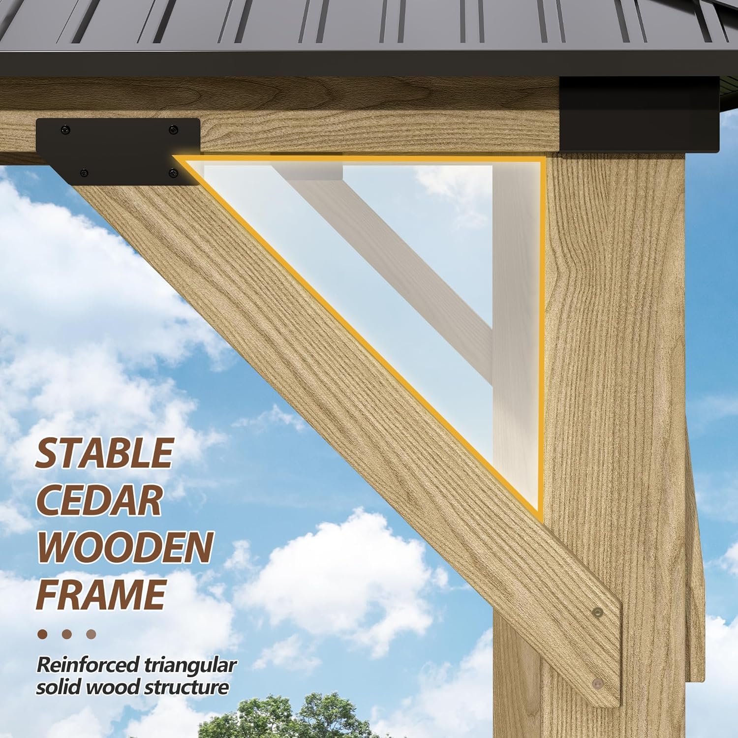 10’x12′ Wooden Hardtop Gazebo,Wood Heavy Duty Solid Cedar Gazebos with Mosquito Netting and Waterproof Curtains,Outdoor Metal Canopy for Backyard Deck Patio B0DWK3ZFSQ