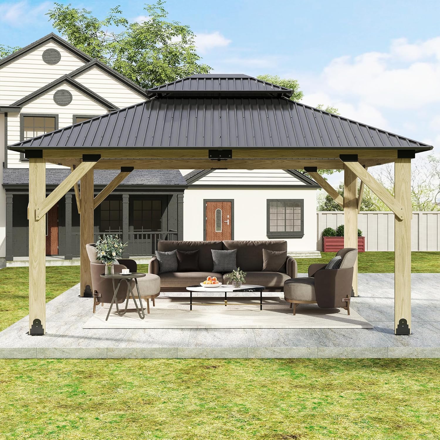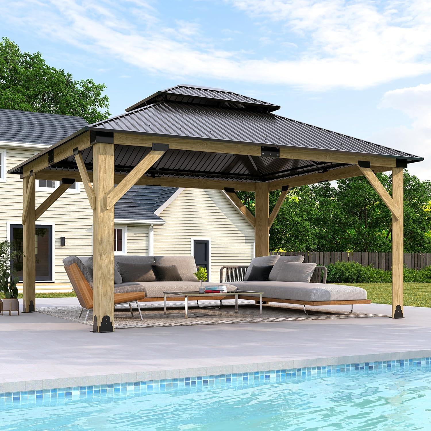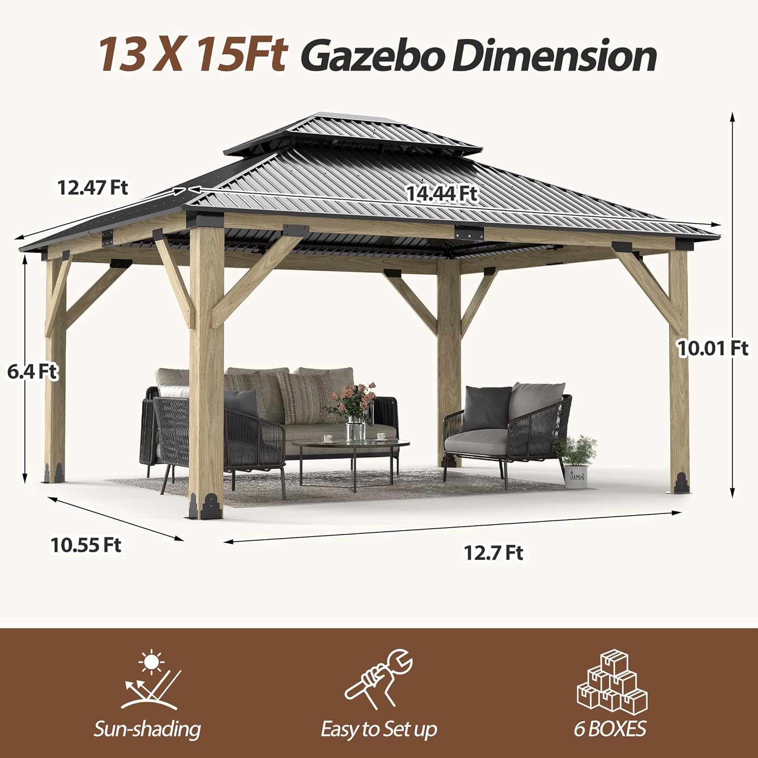 Rsyafung 13’x15′ Wood Gazebo,Outdoor Hardtop Gazebo with Galvanized Steel Doule Roof, Wooden Frame Gazebos for Patio Backyard Deck B0DMF185HC