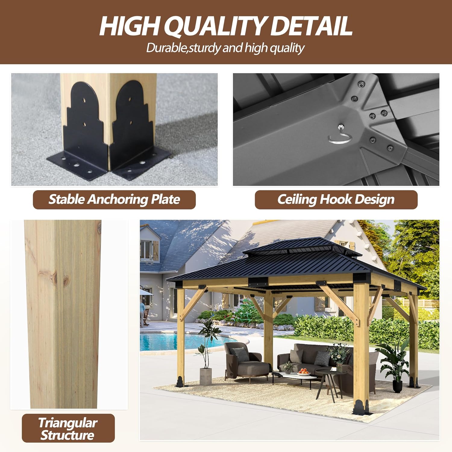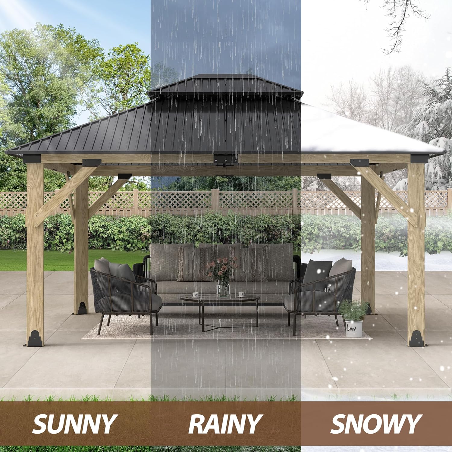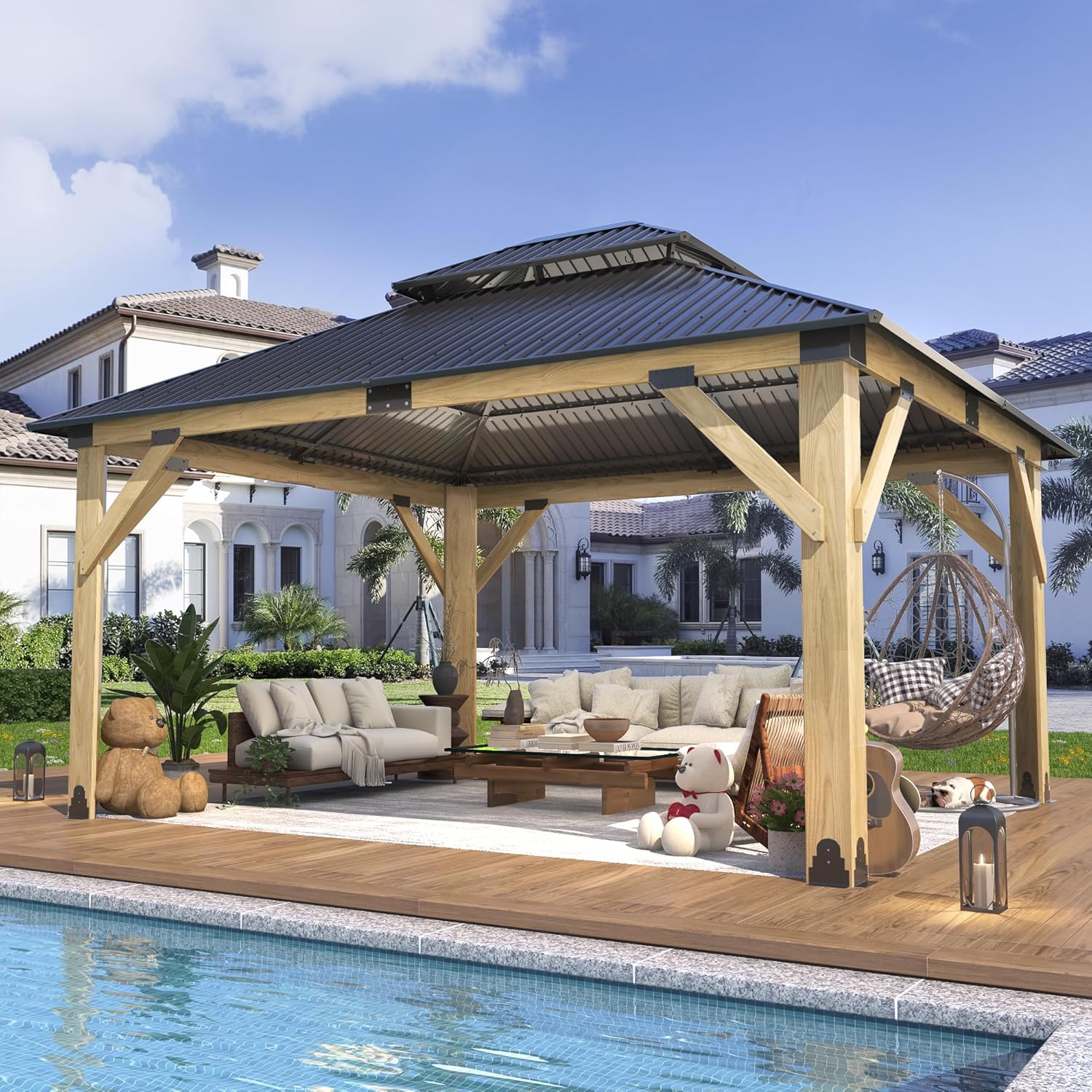 Rsyafung 13’x15′ Wood Gazebo,Outdoor Hardtop Gazebo with Galvanized Steel Doule Roof, Wooden Frame Gazebos for Patio Backyard Deck B0DMF185HC