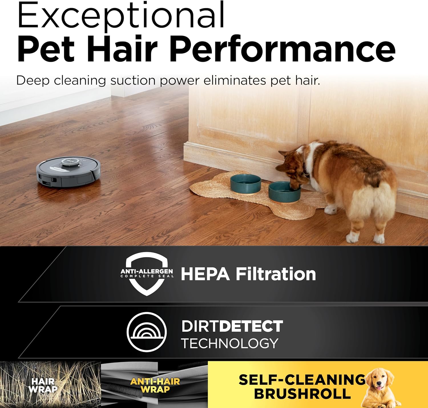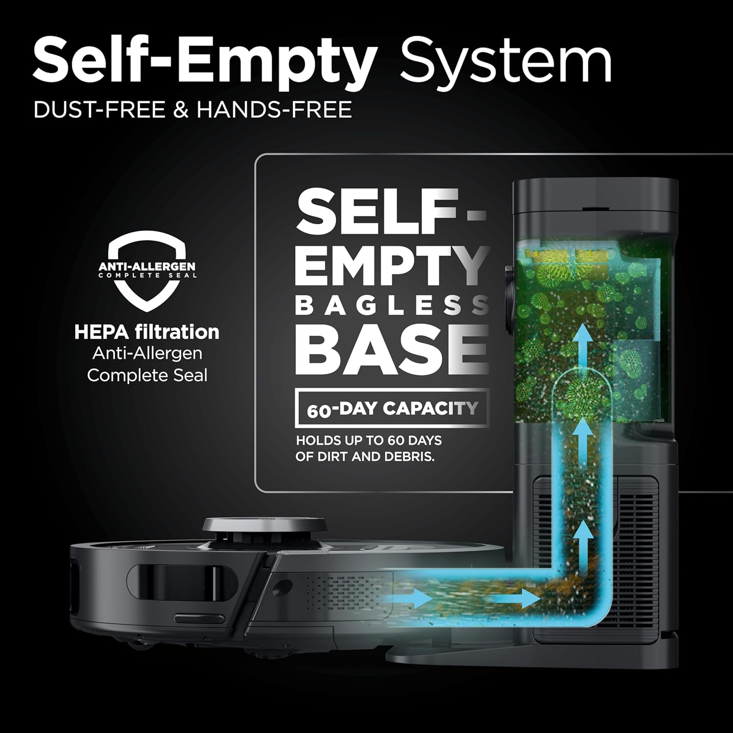 Shark PowerDetect Self-Empty Robot Vacuum with NeverStuck Technology, Auto Deep-Clean Carpets & Hardfloors, XL 60 Day Capacity HEPA Bagless Base Neutralizes Odors, for Pet Hair, Black (AV2820AE) B0D167B62M