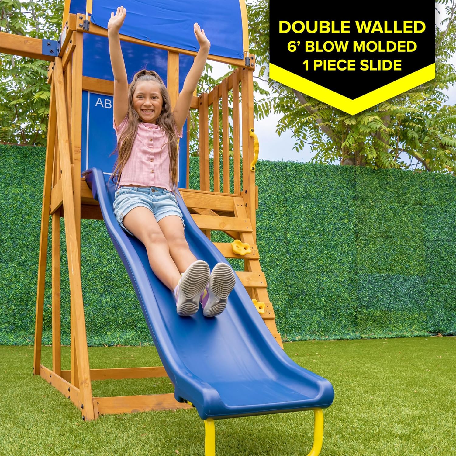 Sportspower Augusta Wooden Swing Set with Heavy Duty A-Frame & 6ft Double Wall Slide, Bonus Anchor Kit Included B0CHMFXCY2